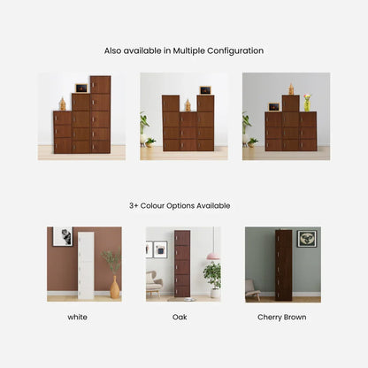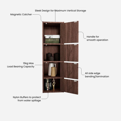 The modern Albert Cabinet occupies a small corner of your space providing maximized storage solutions. The four tier cabinet crafted from engineered wood can be used for storing a variety of items from books, magazines, kids storage, bed and bath storage etc. With natural wood grain finish, the rack merges with any themed rooms with magnetic doors to keep the dust away, available in cherry brown and oak finish.