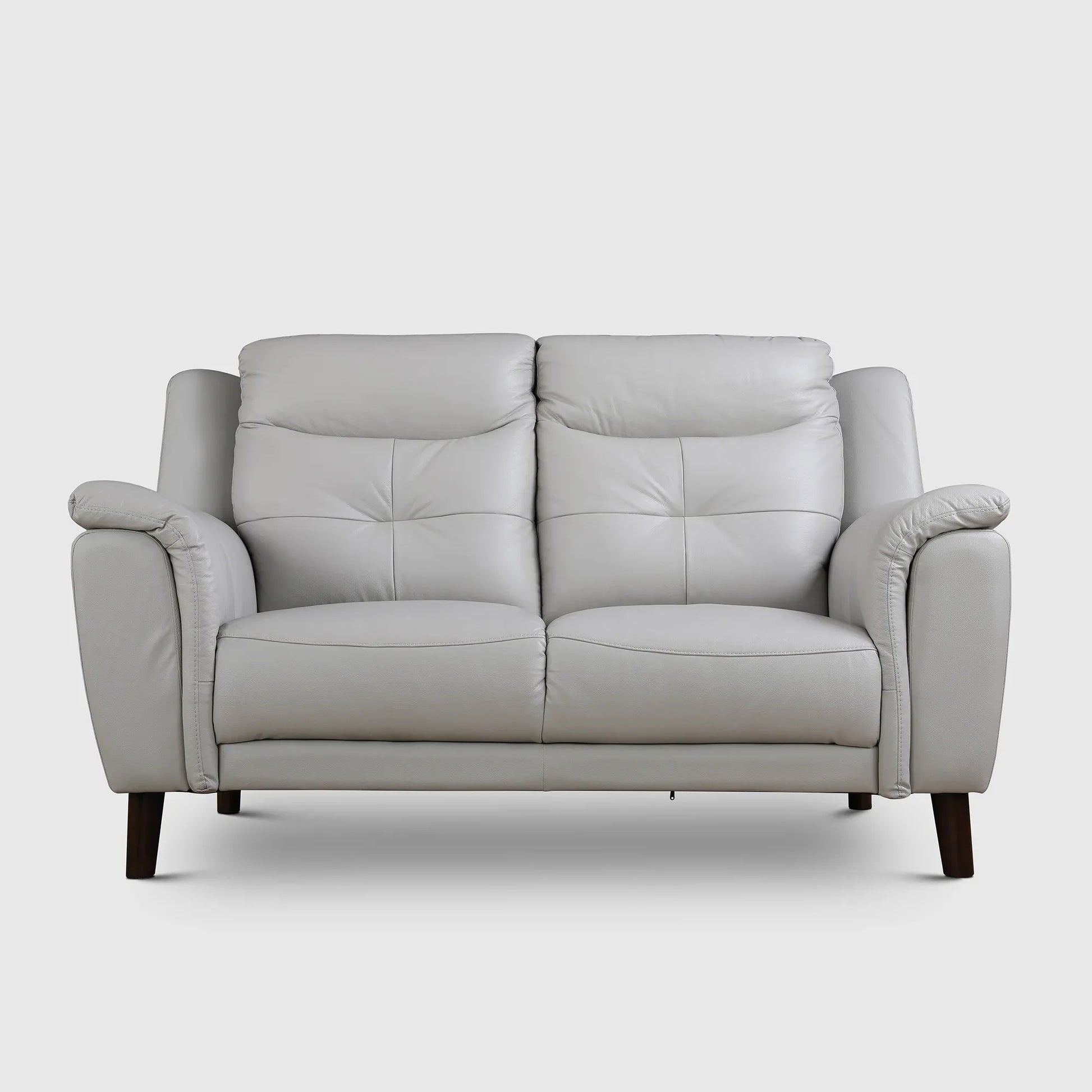 Alexa Half Leather Two Seater Sofa in Light Grey Colour