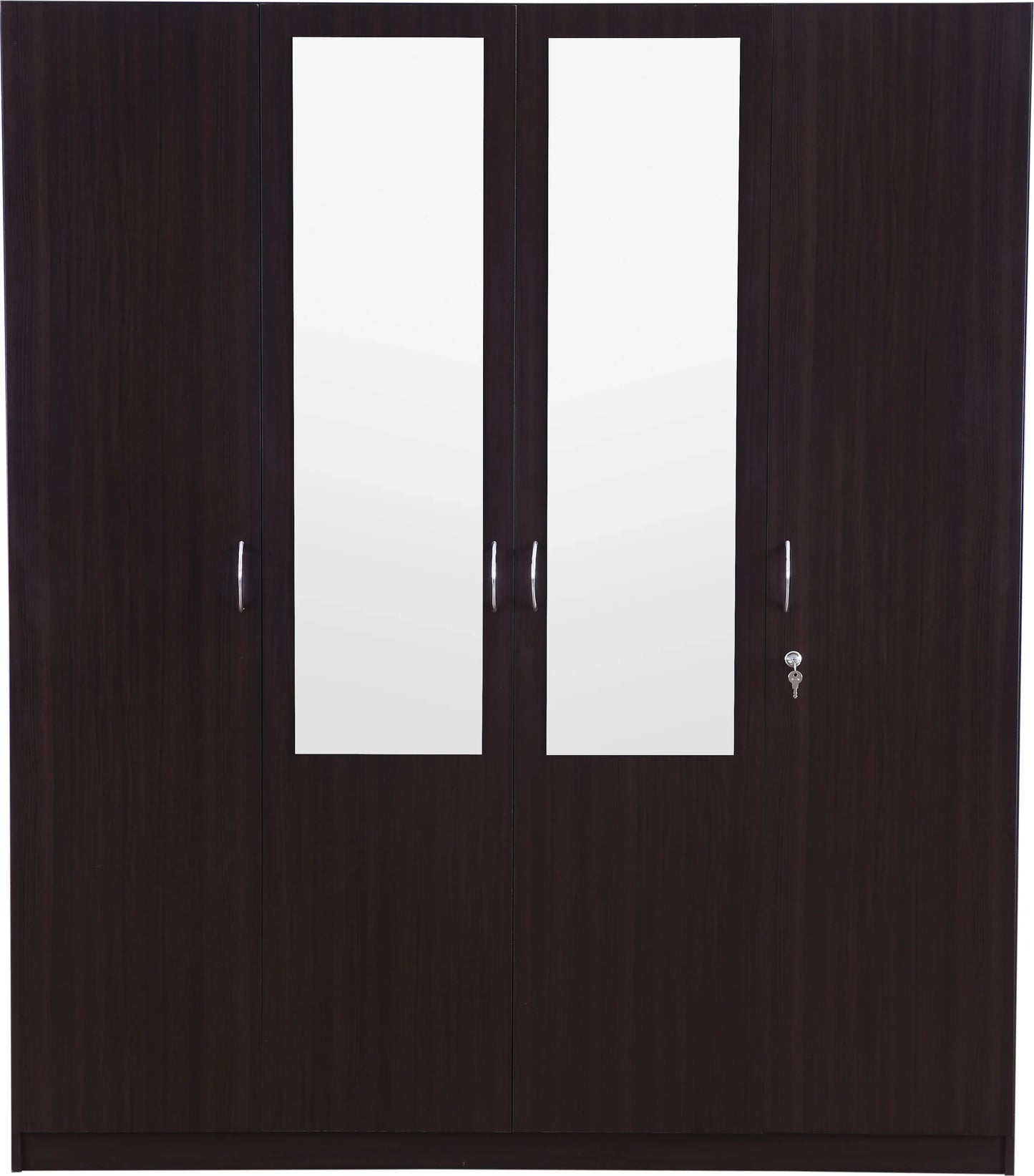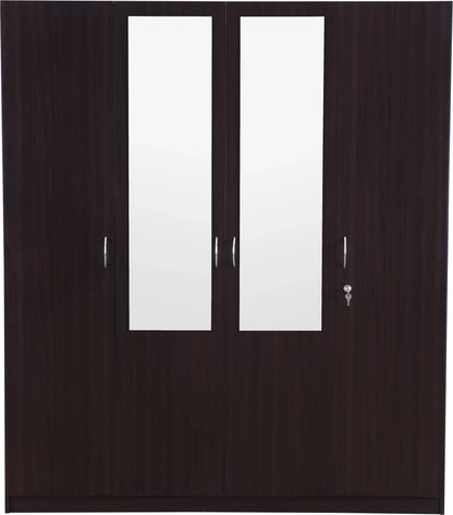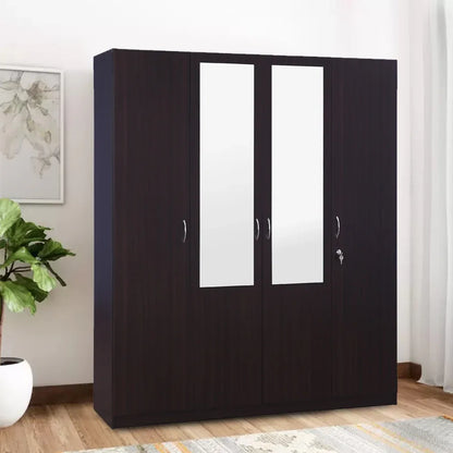 The Allen four door wardrobe with mirror is crafted with modern and clean lines from engineered wood. It has optimum storage and elegant natural wood grain finish with ergonomic fittings on the inside.