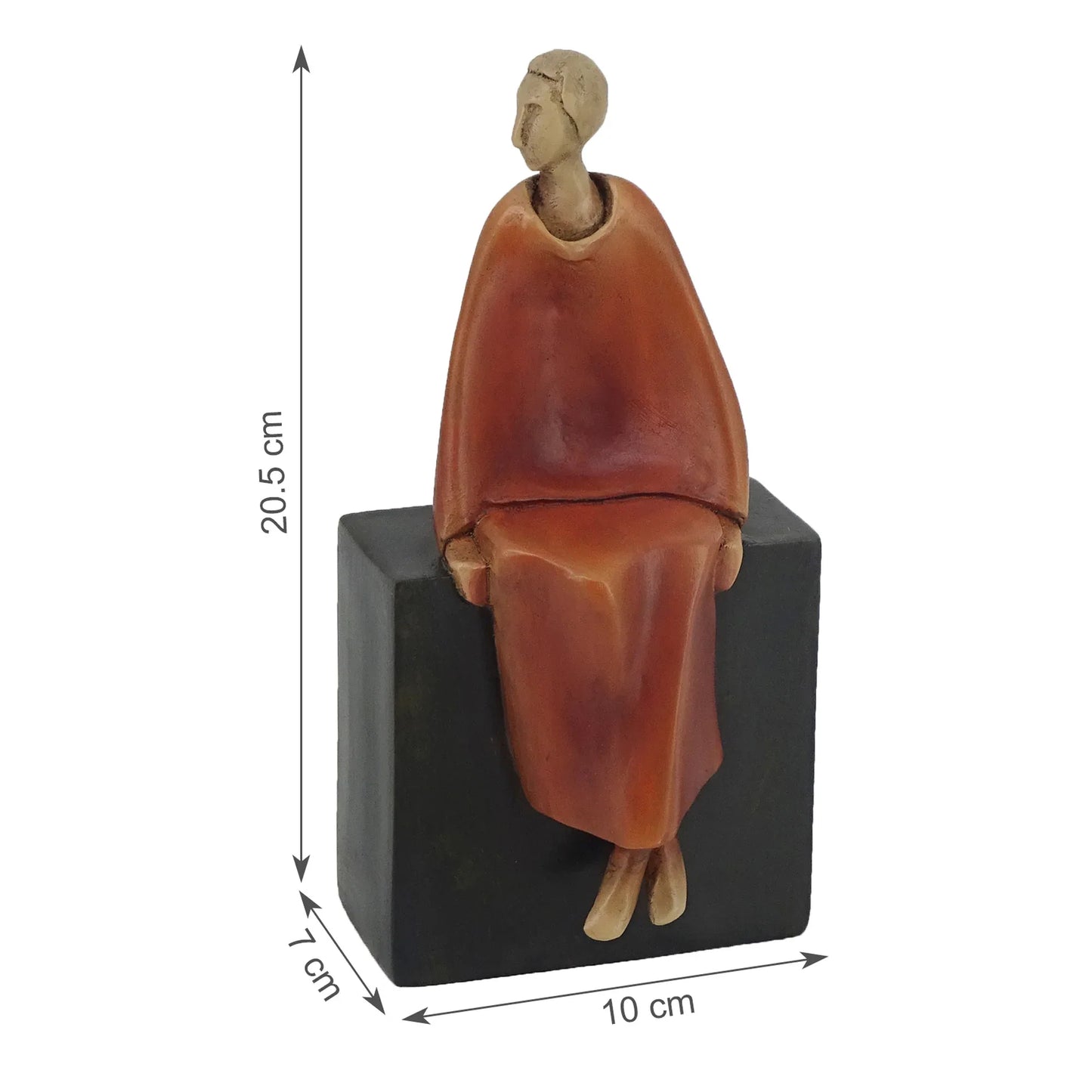 Alpine Polyresin Man Sitting On Bench 20 Cm in Brown Colour