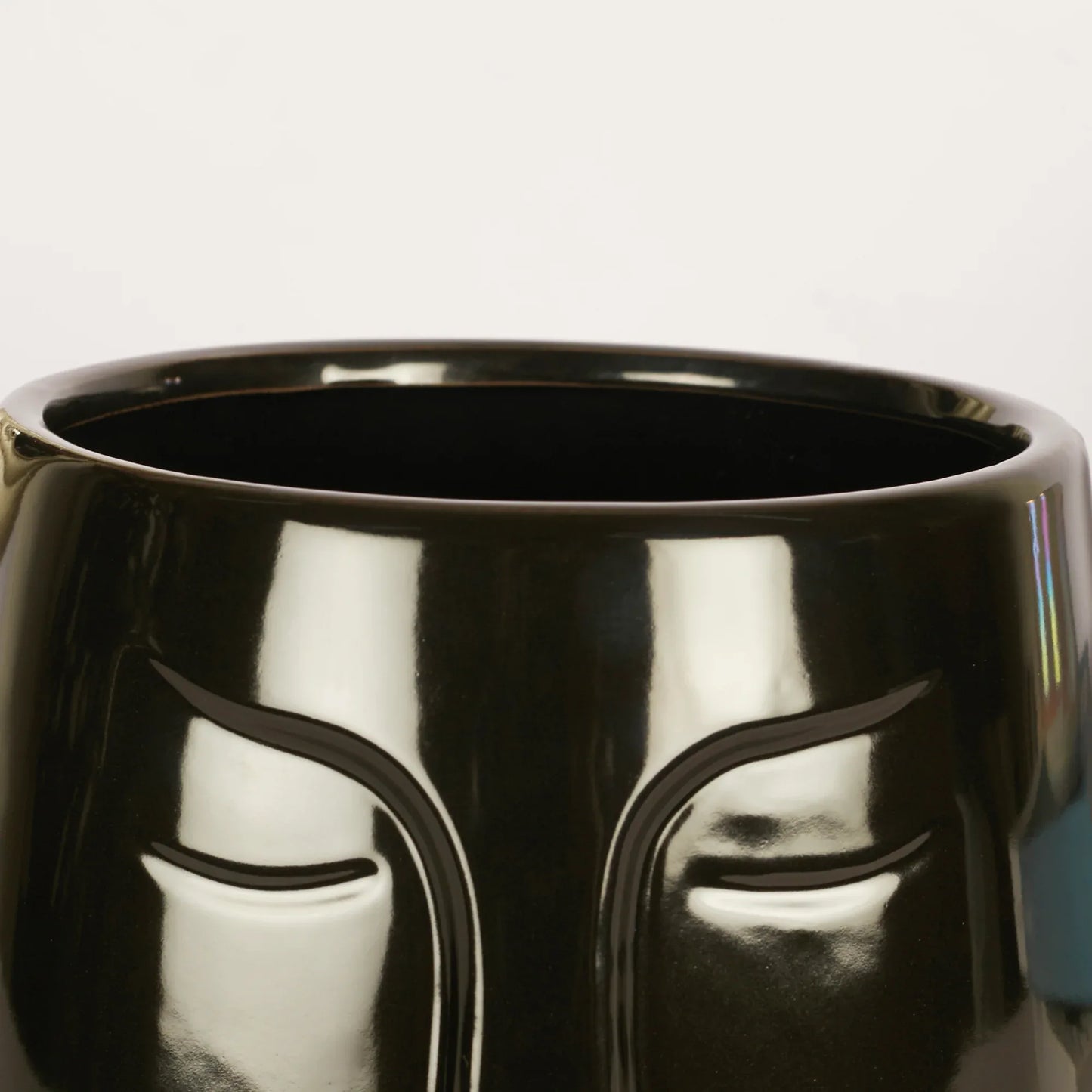 Alura Milan Face Ceramic Planter 17Cm in Black Colour