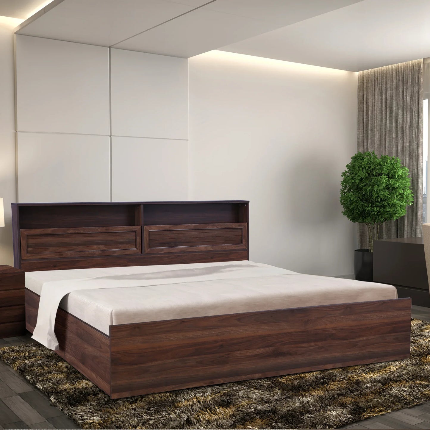 Alyssa Queen bed with Box storage in Wenge Colour