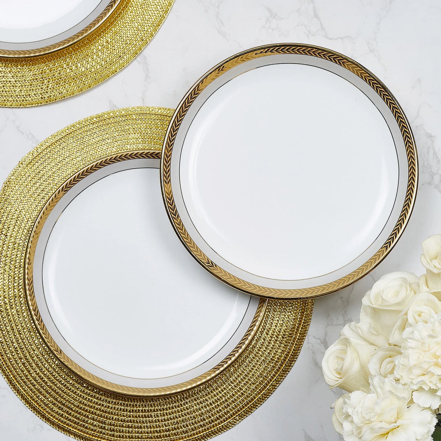 Amour Real Gold-Plated Bone China Diana Dinner Plate Set of 2 in Grey & White Colour