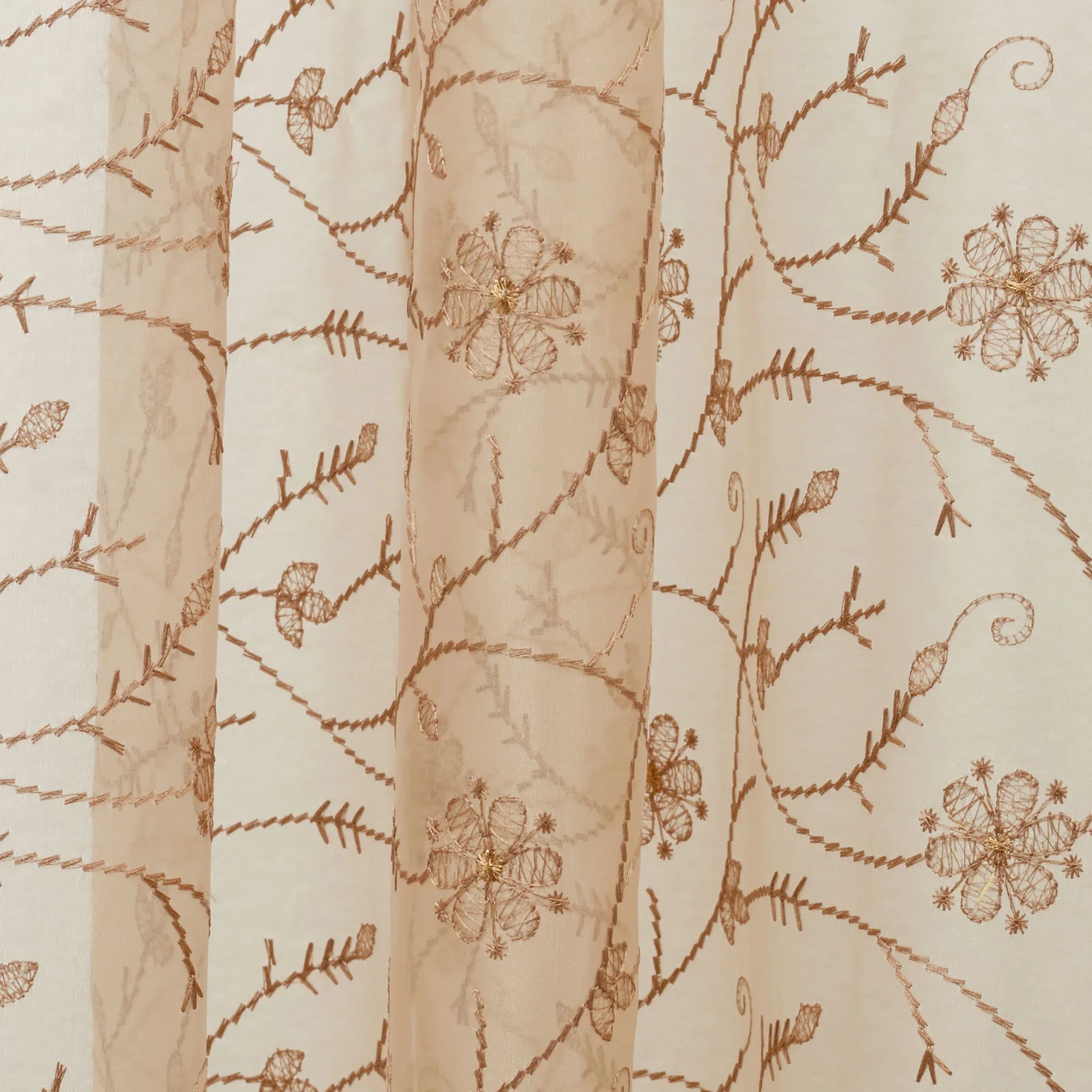 Amour Set Of 2 Embroidered Window Sheer Curtains 5 feet in Beige Colour
