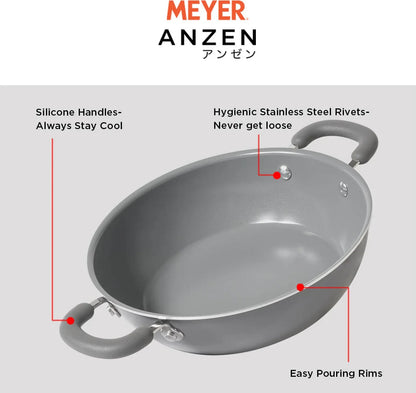 Anzen Ceramic Coated Aluminium Kadai With Lid 24Cm 2.60 Ltr in Grey Colour