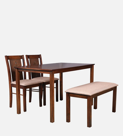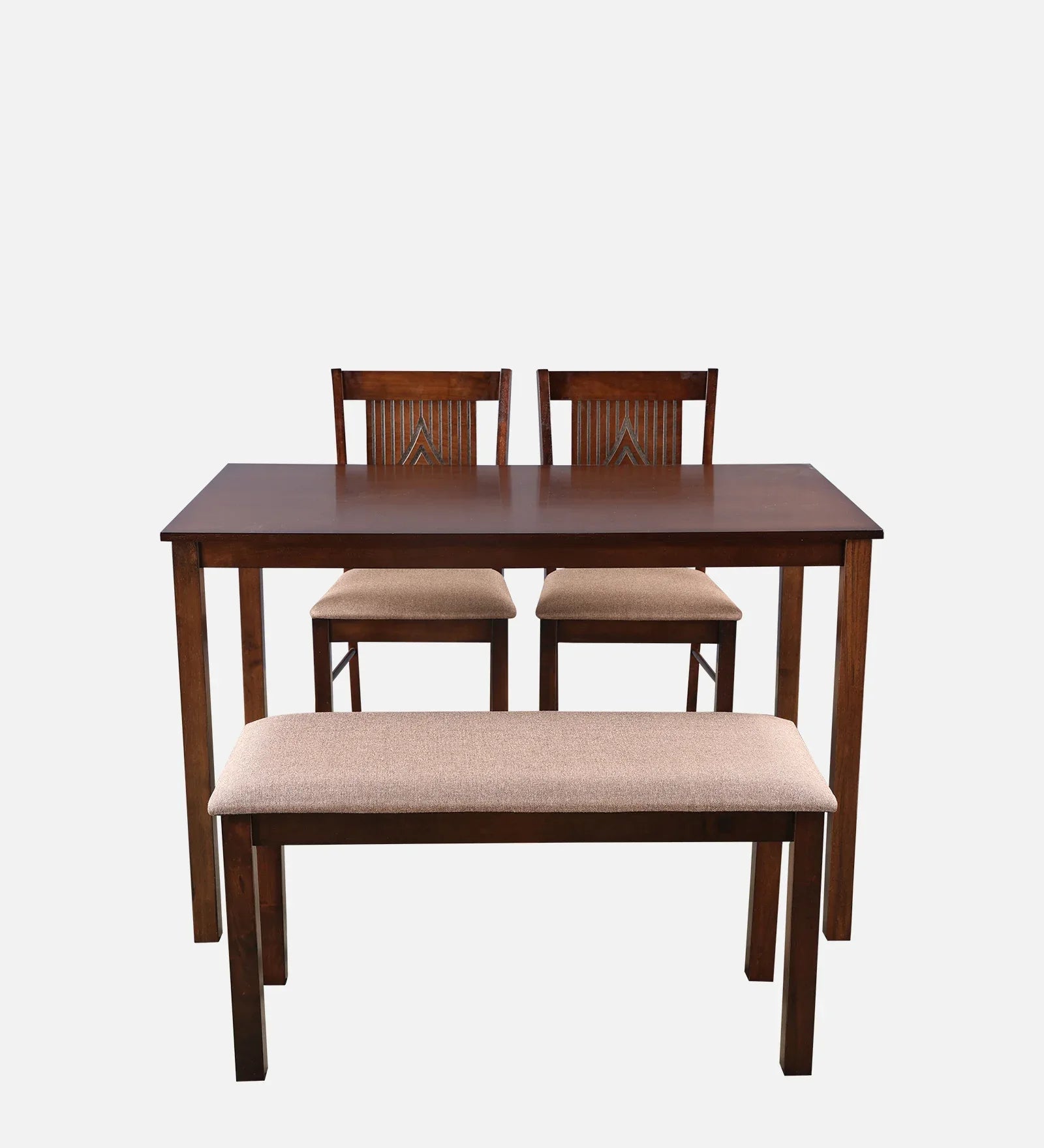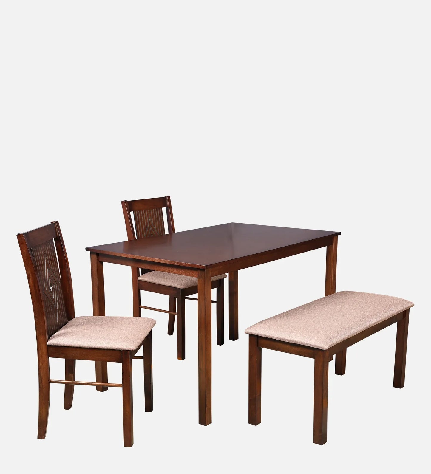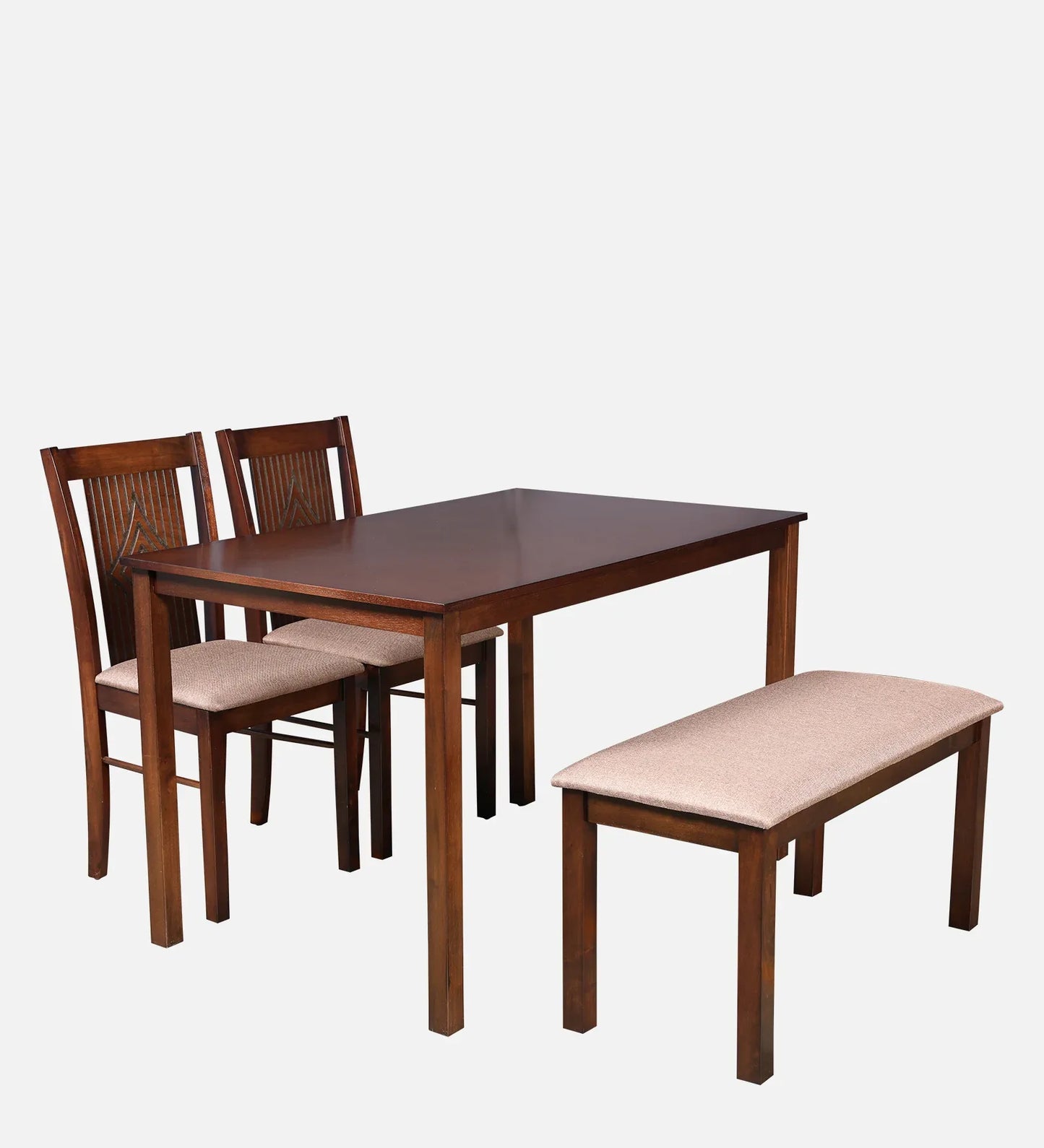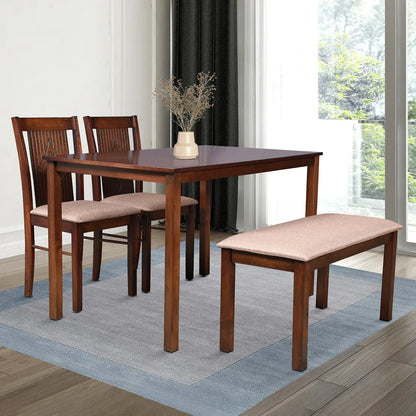 Aravali Rubber Wood Four Seater Dining Set With Bench in Antique Cherry Colour