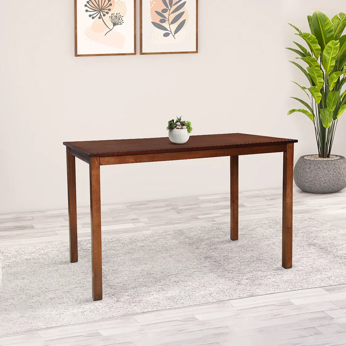 Aravali Rubber Wood Four Seater Dining Table in Antique Cherry Colour