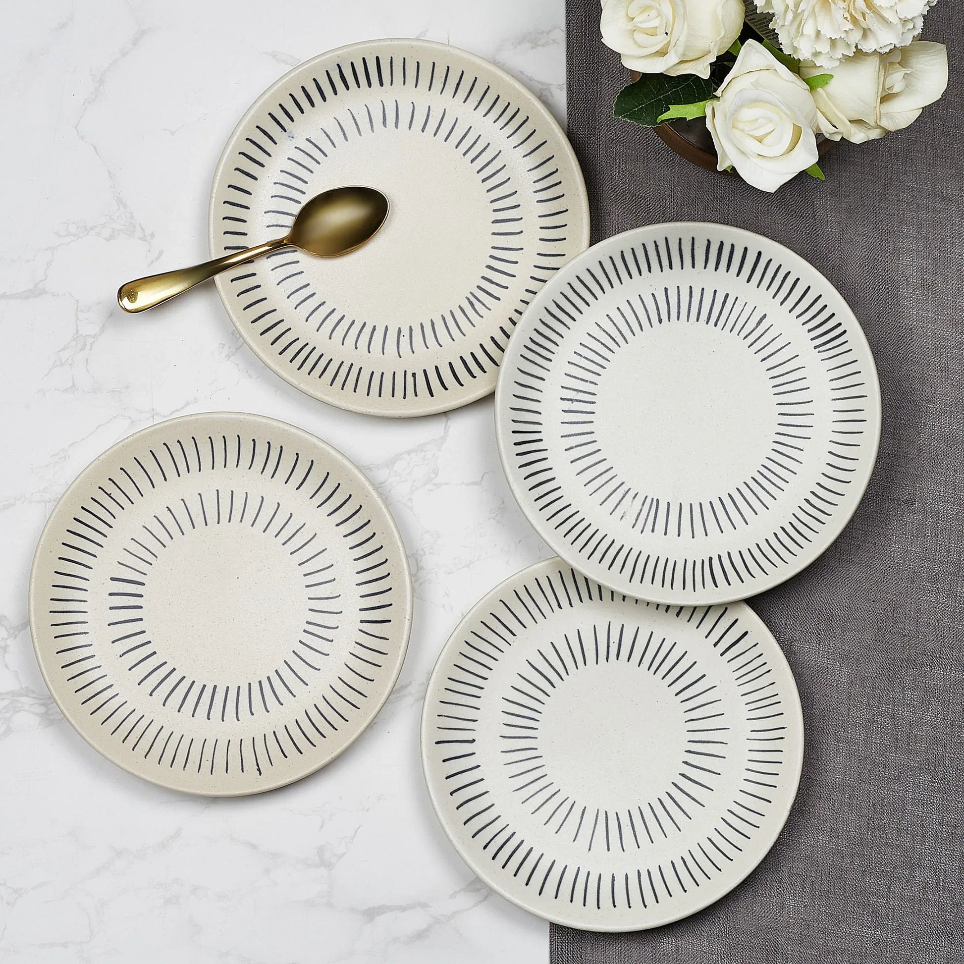 Artisanal Studio Pottery Stoneware Quarter Plate Set of 4 in Black & Ecru Colour