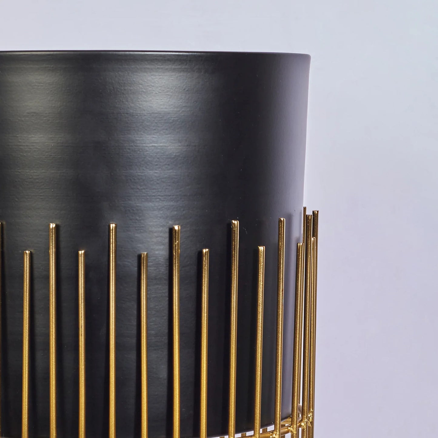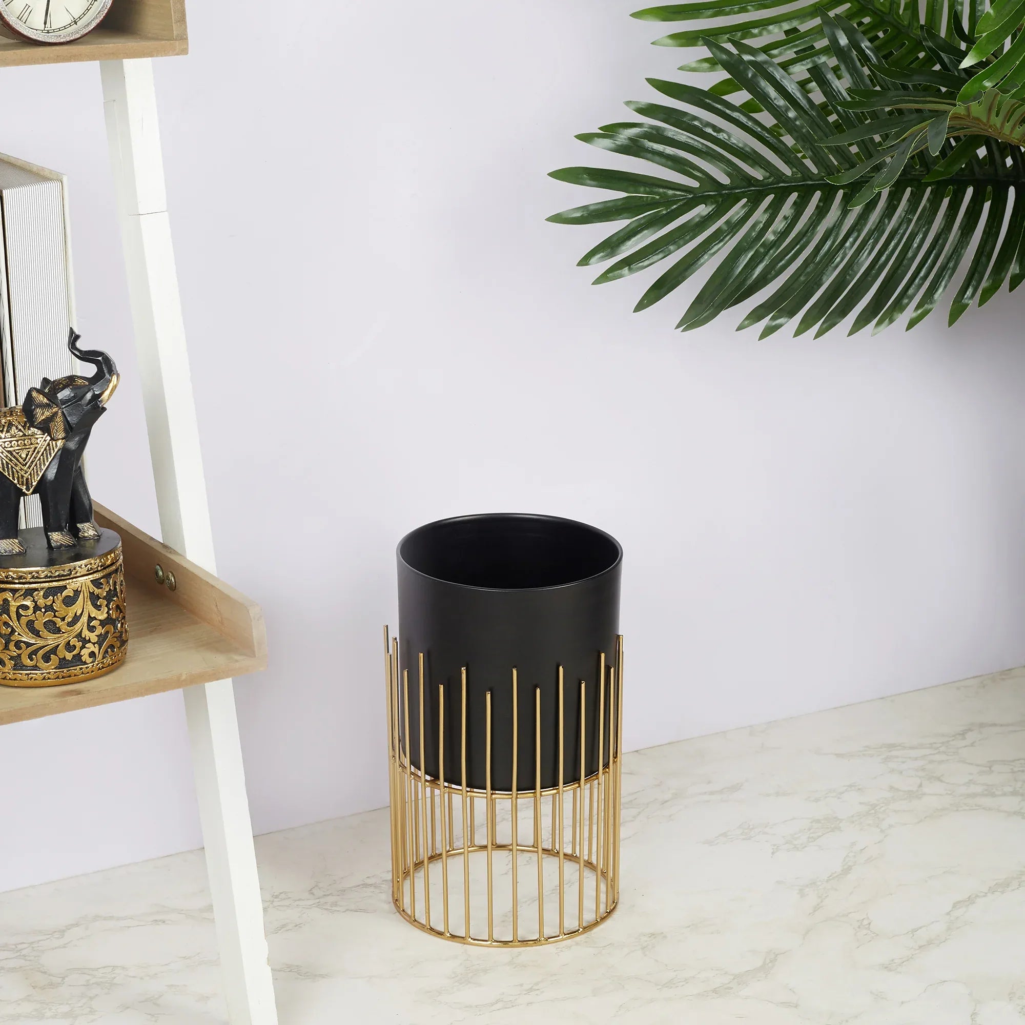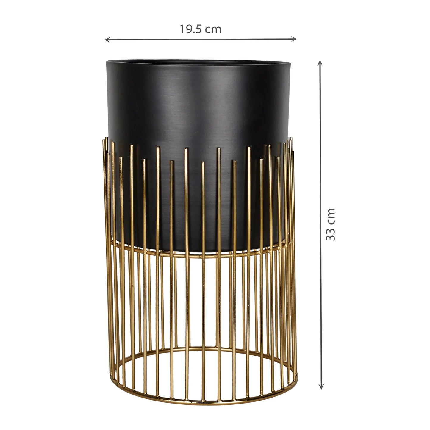 Artiskylar Metal Matt Finish Planter 33 Cm in Black and Gold Colour