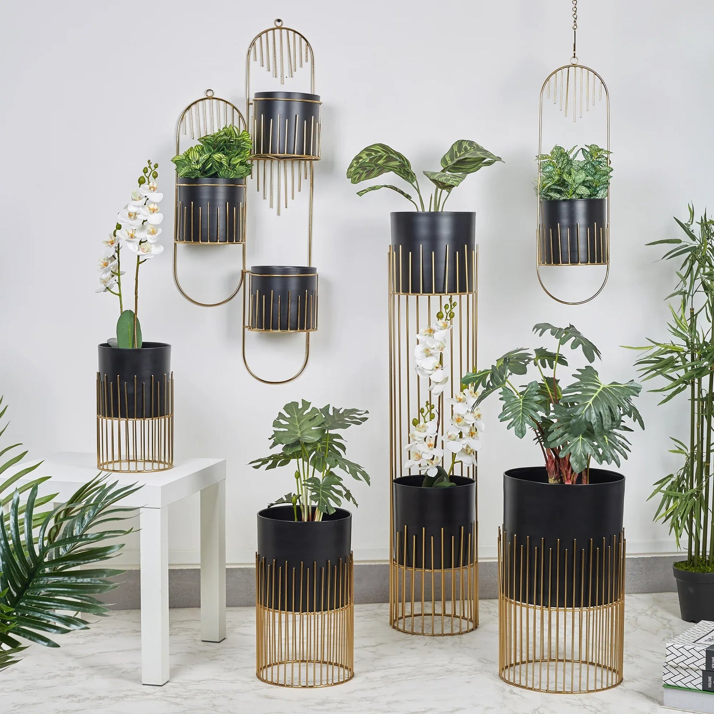 - Display your favorite greens in style, the combination of black matt texture and shiny gold itself creates its own luxury statement.These planters can bring up rich style to your entryway, living room, or outside on the patio.