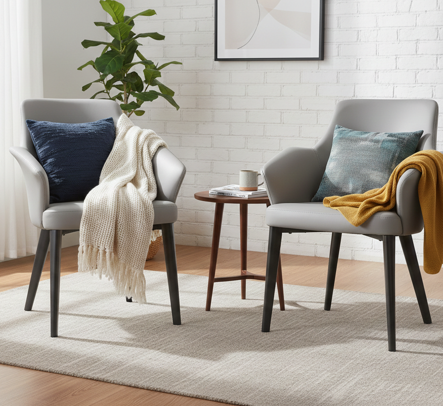 - The chairs comes with leatherette and Carbon steel legs that imparts a high-end look.