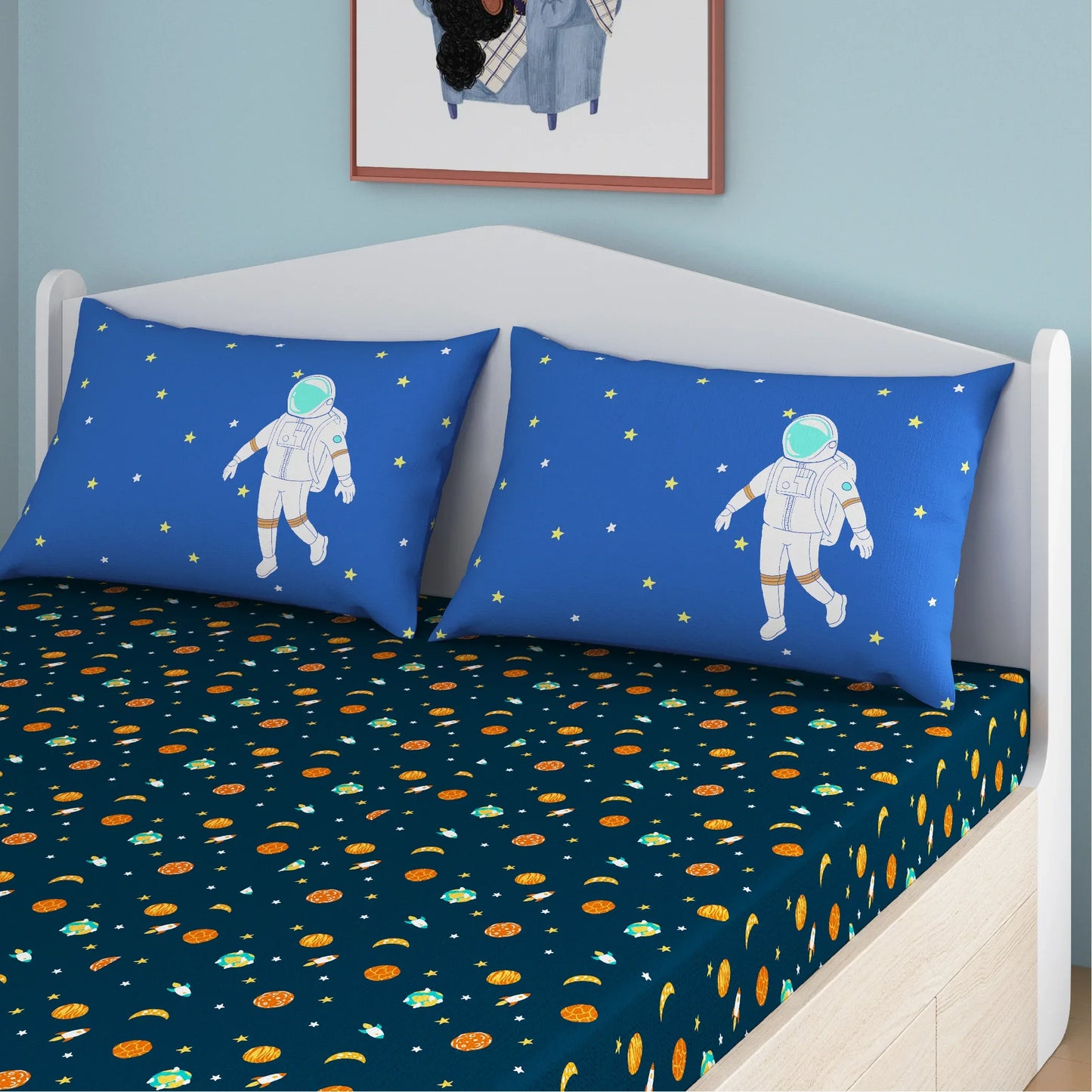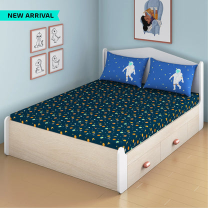 Astronuts Bamboo Cotton Queen Fitted Bedsheet in Multi Colour