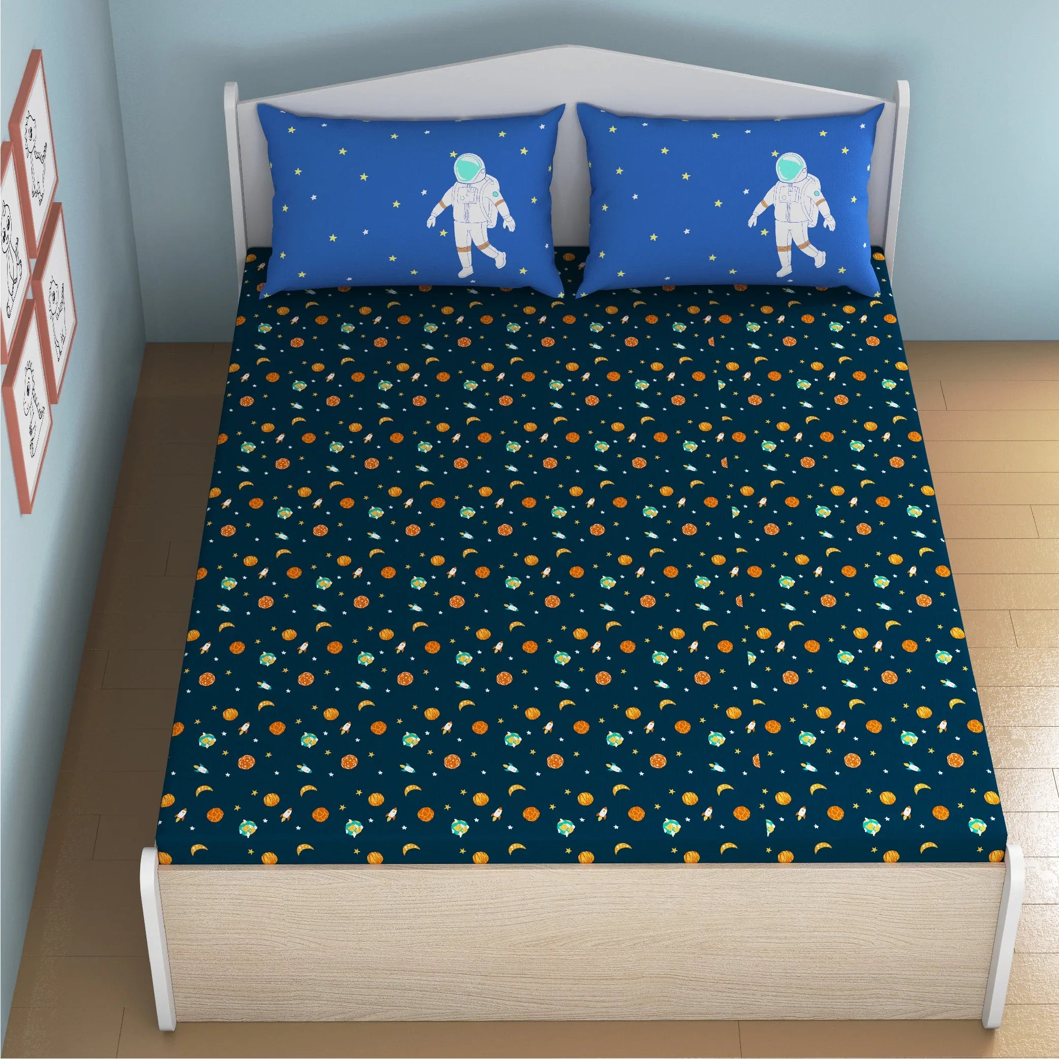- An enchanting space themed design that immediately takes children into an alternate and wondrous reality. Thoughtful designs that spark childrens desire to learn and create Fitted sheets that kids can tuck-in themselves, building self-sufficiency. Ultra-soft 100 Bamboo Cotton for maximum comfort and safety.