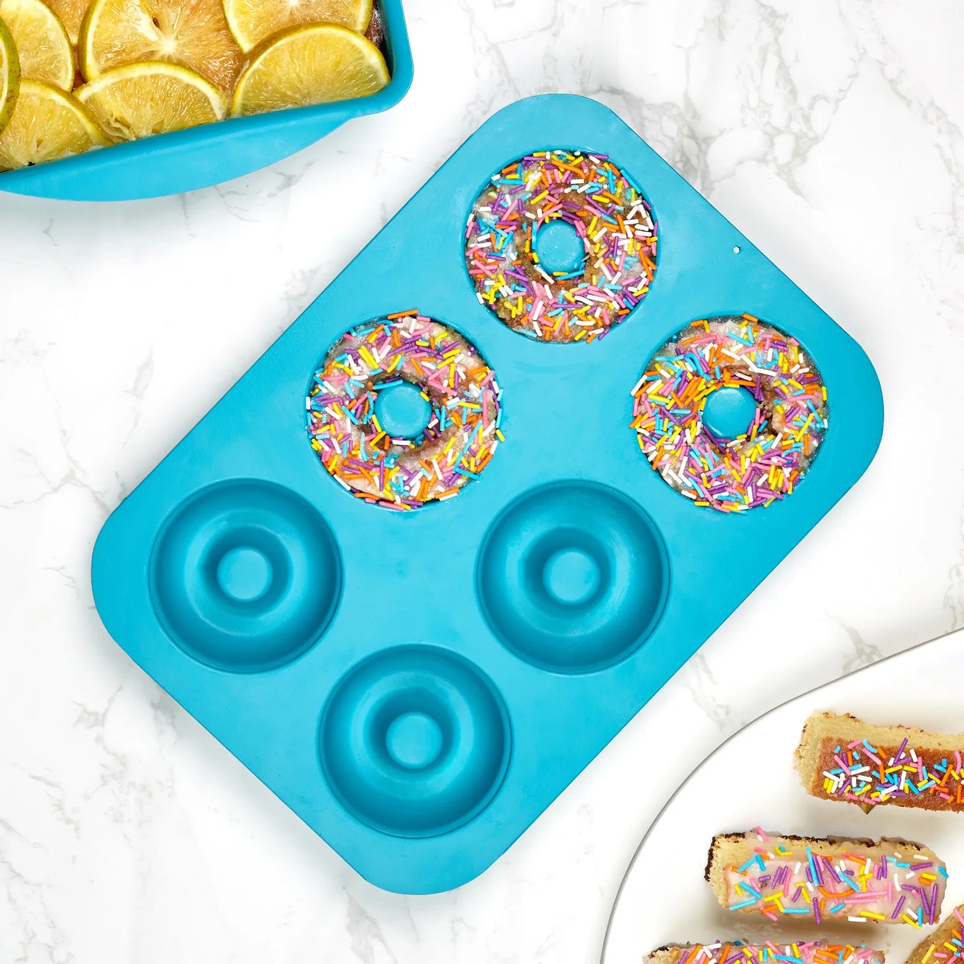 - Scrumptious donuts coming your way! Get ready to dive right into tasty donuts baked in this high-quality aluminium donuts tray. It is durable, safe-to-use and comes in a vibrant teal shade. Grab this and thank us later!