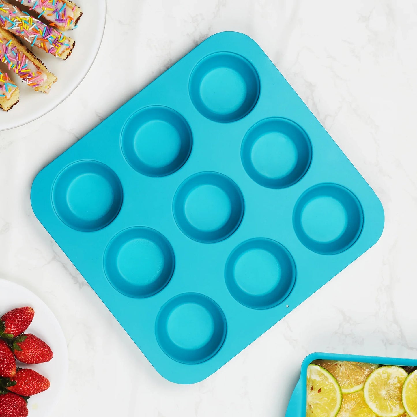 Bakelicious Aluminium 9 Cavity Muffin Tray in Teal Colour