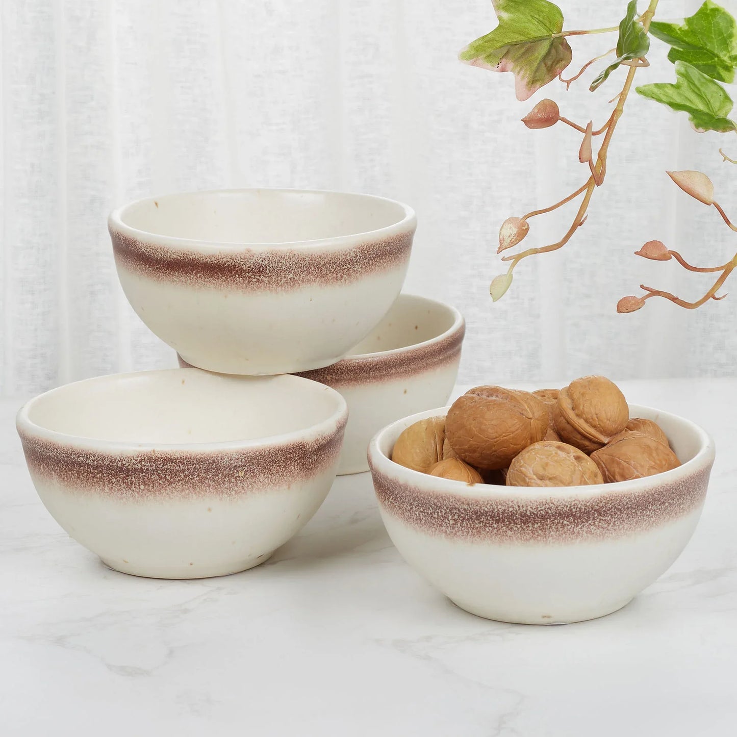 Beautiful Kitchen Studio Pottery Stoneware Katori/Veg Bowl Set of 4 in Beige Colour