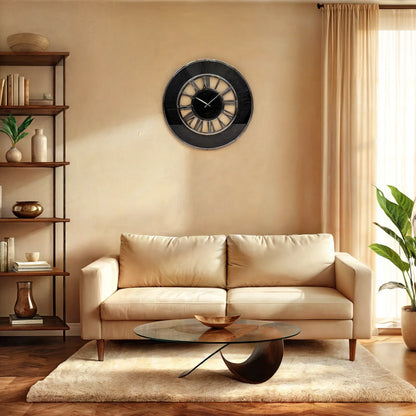 Bello Roman Wall Clock 51cm in Nickle Black Colour