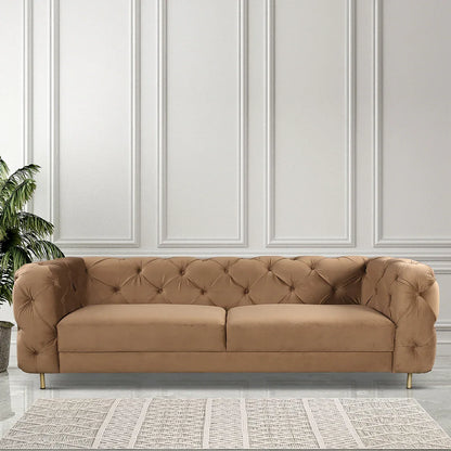 Bellrose Velvet Fabric Three Seater Sofa in Brown Colour
