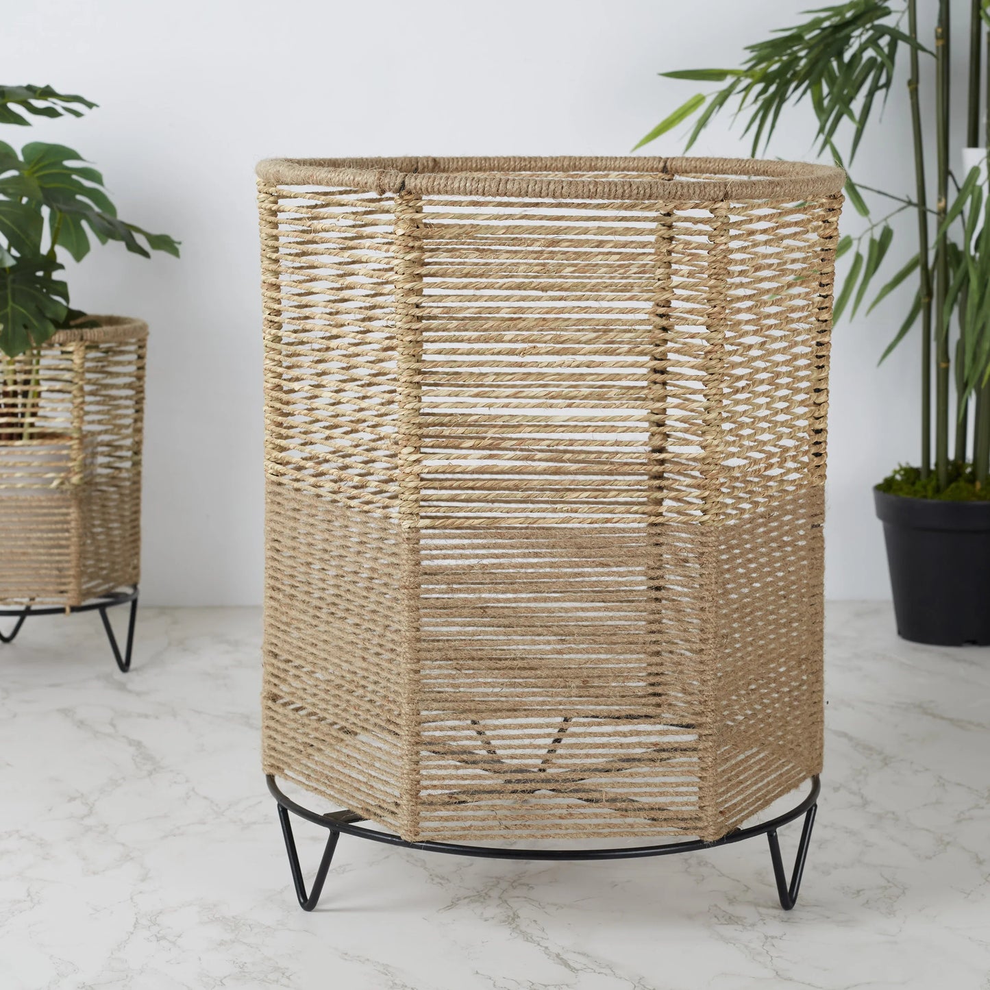 Boho Metal And Natural Fiber Planter Stand 42Cm in Brown Colour