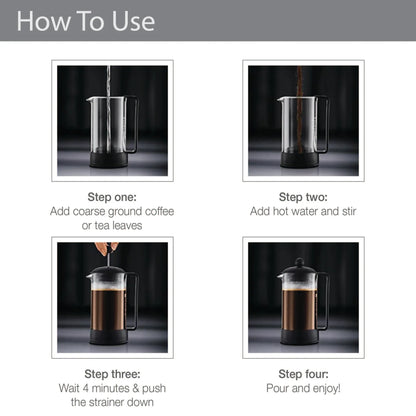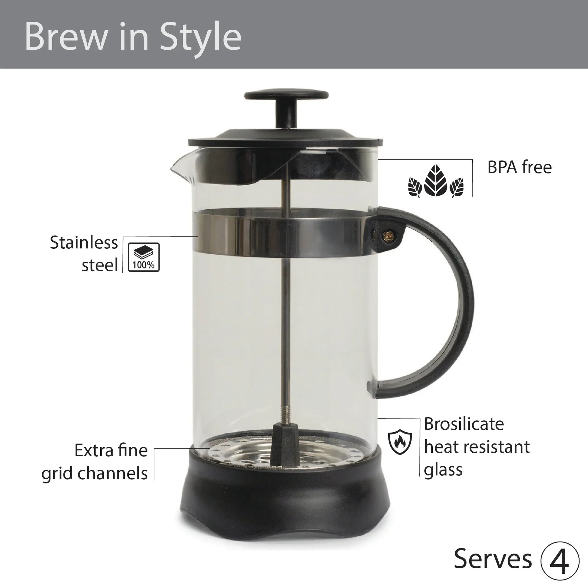- Sit back, relax & sip into perfect cafe style coffee in the comfort of home. The classic Brew French Press promises robust & indulgent coffee at any hour of the day. Made with heat-resistant glass, this product is durable, easy to use & makes upto 10 cups of coffee in one go.