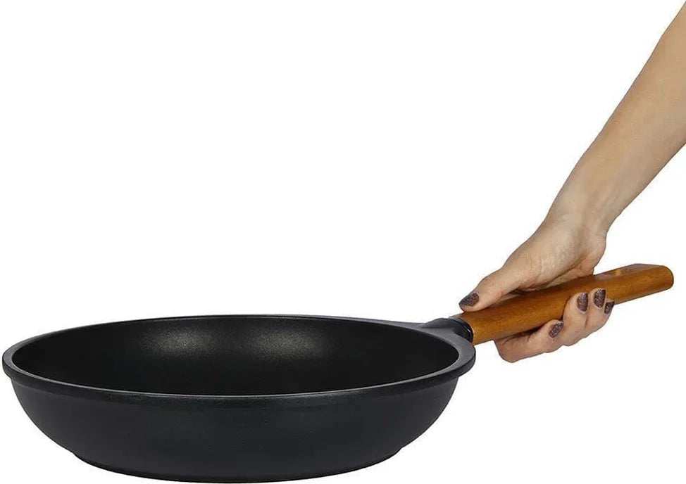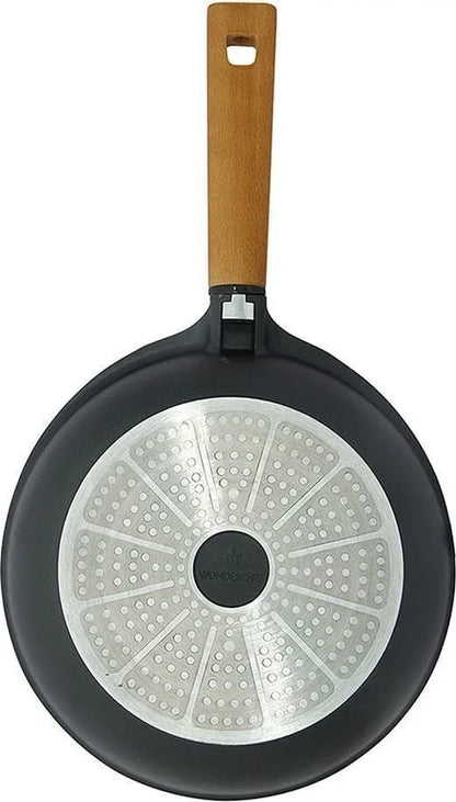 Caesar Induction Bottom Non-Stick Aluminium Fry Pan With Wooden Handle 26cm / 2300ml / 5mm in Black Colour