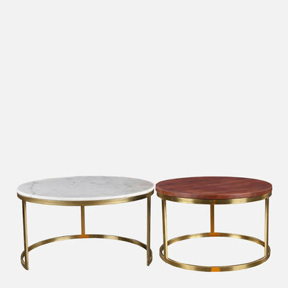 - Available in a combination of white marble, Walnut wood finish and gold metal finish