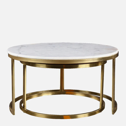 Castile Marble Center Table in White & Gold Colour