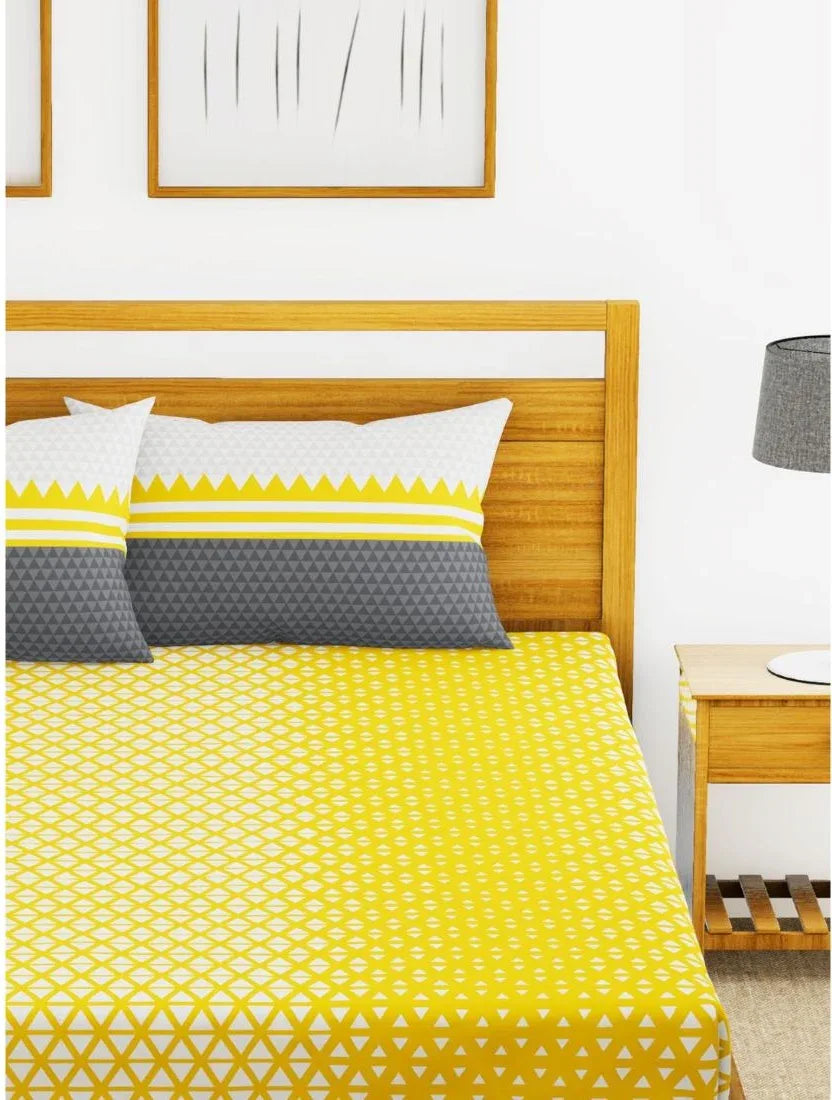 - Made From 100 Mercerized Combed Cotton, With 210 Tc Satin Fabric And Skin-Friendly Prints To Ensure Comfort And Style. This Beautiful Bed Set Adds Charm To Your Bedroom. Made For A King Size Bed, The Set Includes A Double Bed Sheet And Two Pillow Covers. Soft And Luxurious, ItS Machine Washable And Easy To Maintain.