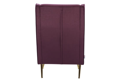 The Charm velvet accent chair in wine velvet upholstery is a versatile seating option, offering elegance and softness to your living spaces. Play with the colour options by this collection to elevate home space with pairing it with a large sofa or creating a cozy nook in your bedroom. Juxtaposing elegance and eclectic styles, the accent chair is constructed with curved arch that hugs your back and provides head support with gold plated metal legs.