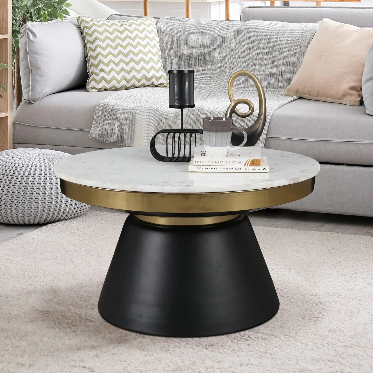 Chelsea Marble & Iron Center Table in White, Black & Gold Colour