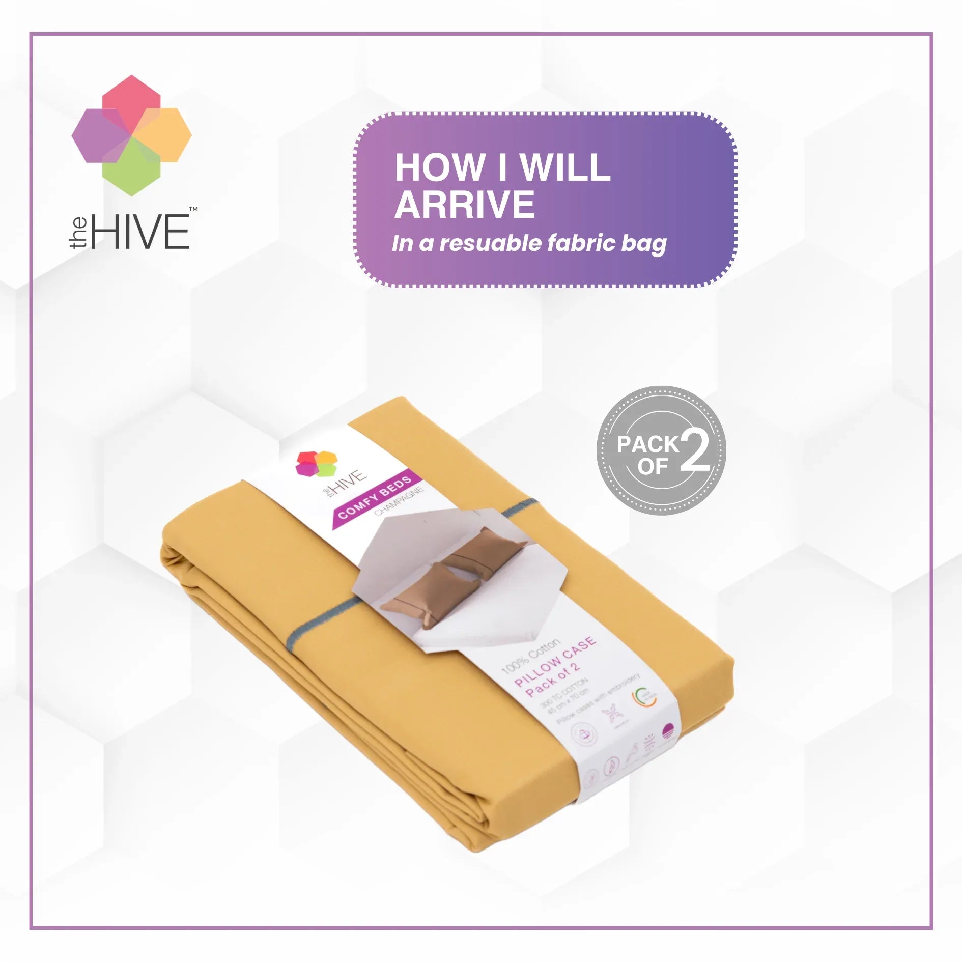 Comfy Beds Set of 2 Pillow Covers Champagne, 45x70cm