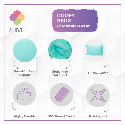 Comfy Beds Single Flat Sheet Cool Mint,150x225cm