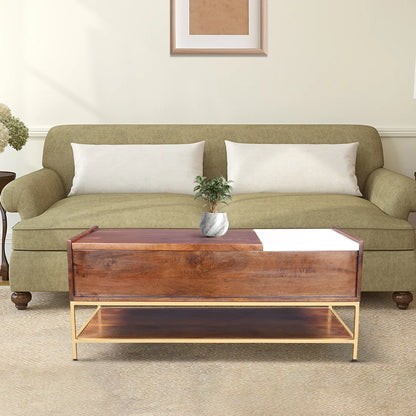 - Tabletop crafted of beautiful White Indian Marble and Natural solidwood