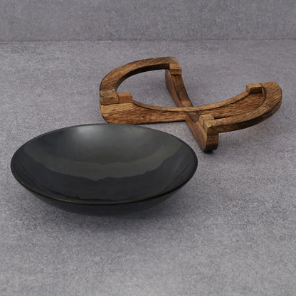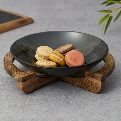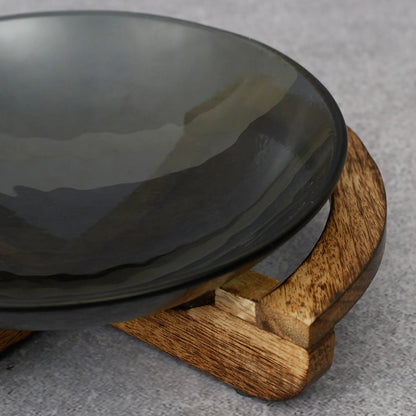 Ebony Glass & Wooden Cross Bowl 24cm in Black Texture Colour