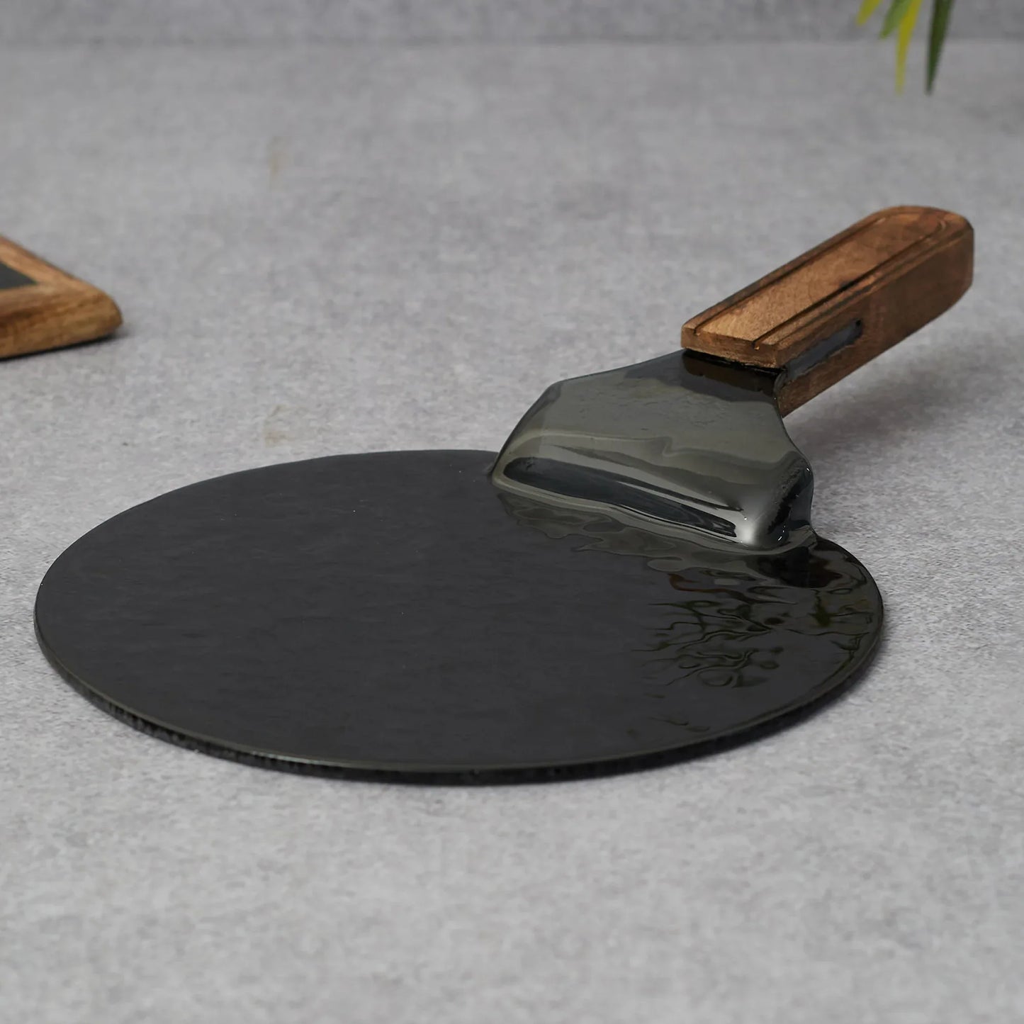 Ebony Glass & Wooden Shovel Pizza Platter in Black Texture Colour