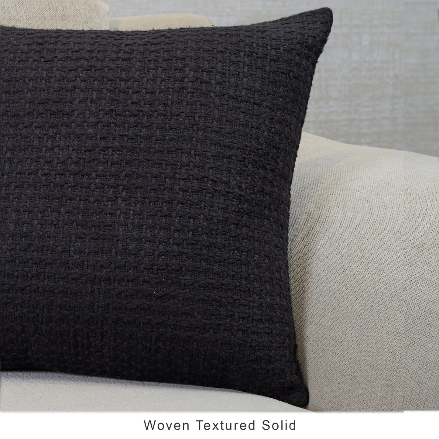 - From the artisanal collection, this super solid cushion cover in ebony is crafted with heavily textured cotton. The tactile rich textures look and feel extra plush which pairs well with a variety of styles.