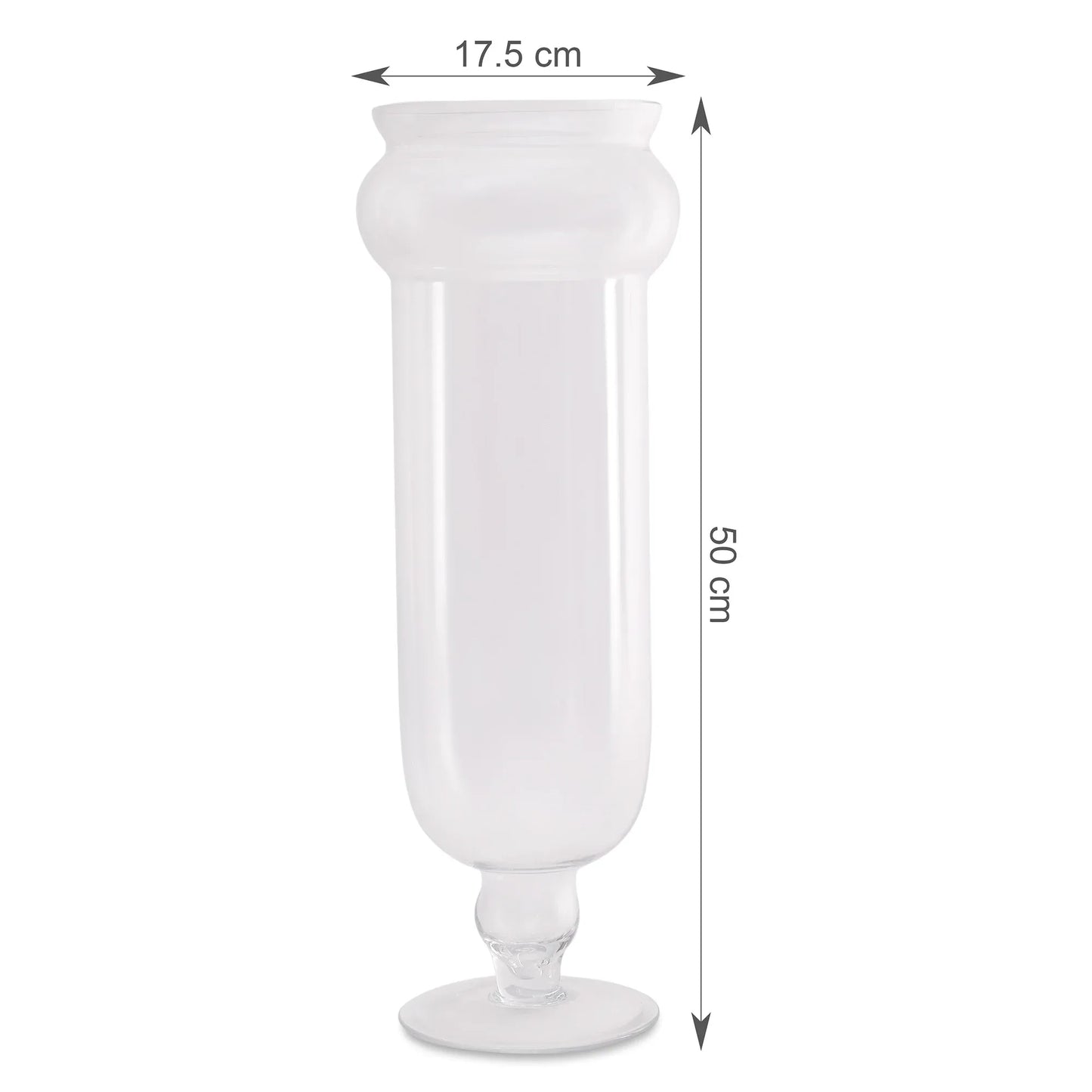 Elevate your home decor with these uniquely-shaped medium-sized glass vases. These exquisitely clear glass vases embody a minimalist elegance that seamlessly blends with any rooms aesthetic. Perfect for showcasing fresh flowers, dried arrangements, or even as standalone statement pieces, these versatile vases infuse a splash of sophistication into your living space. Crafted with durability and a classic design in mind, they promise to enhance your surroundings and catch the eye of any beholder.