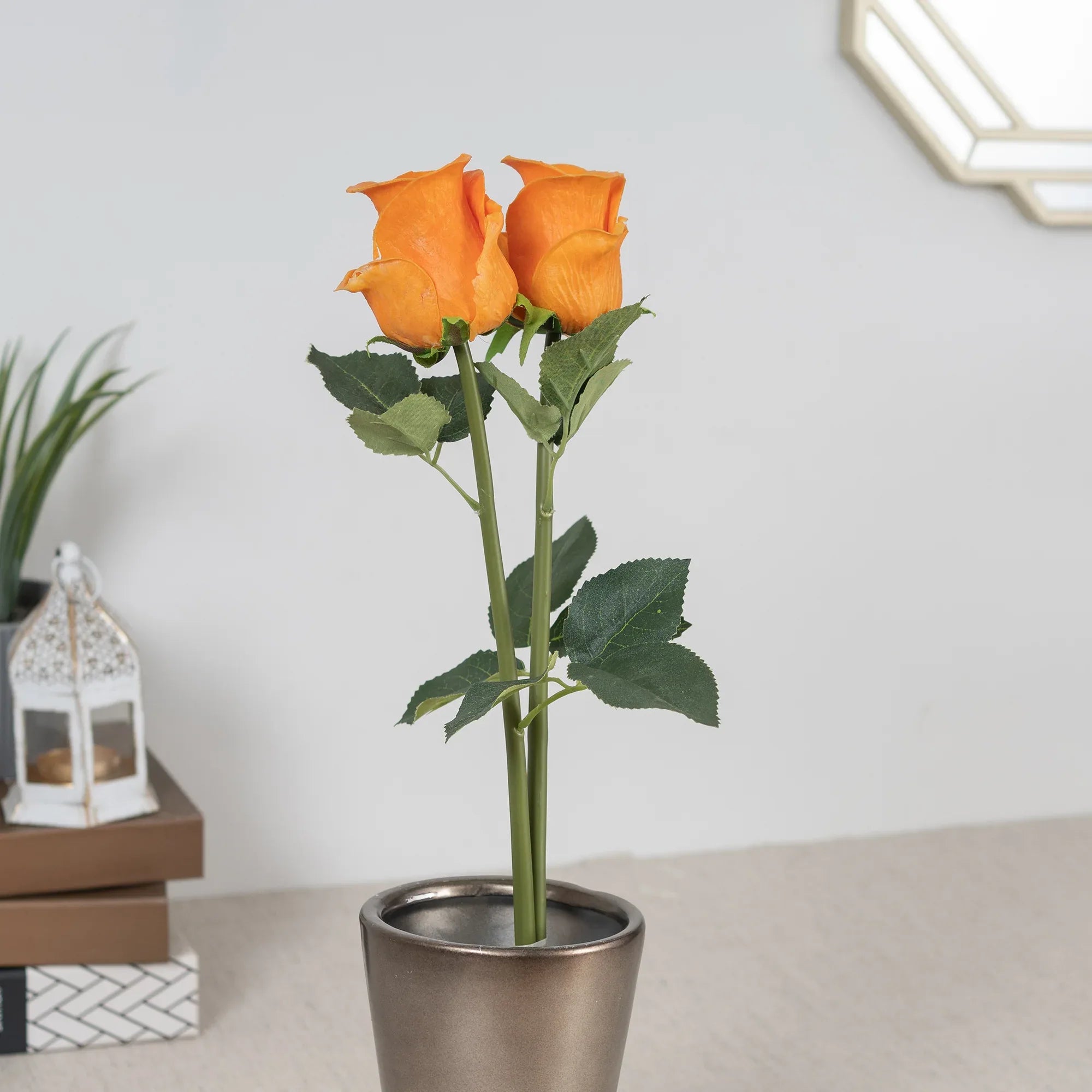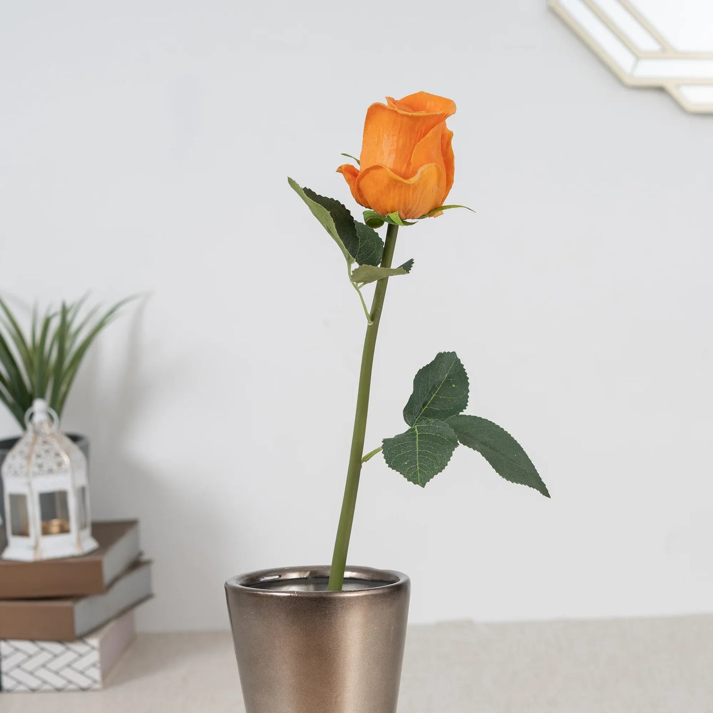 Elora Single Yellow Rose Polyester Artificial Flower 41cm in Yellow Colour