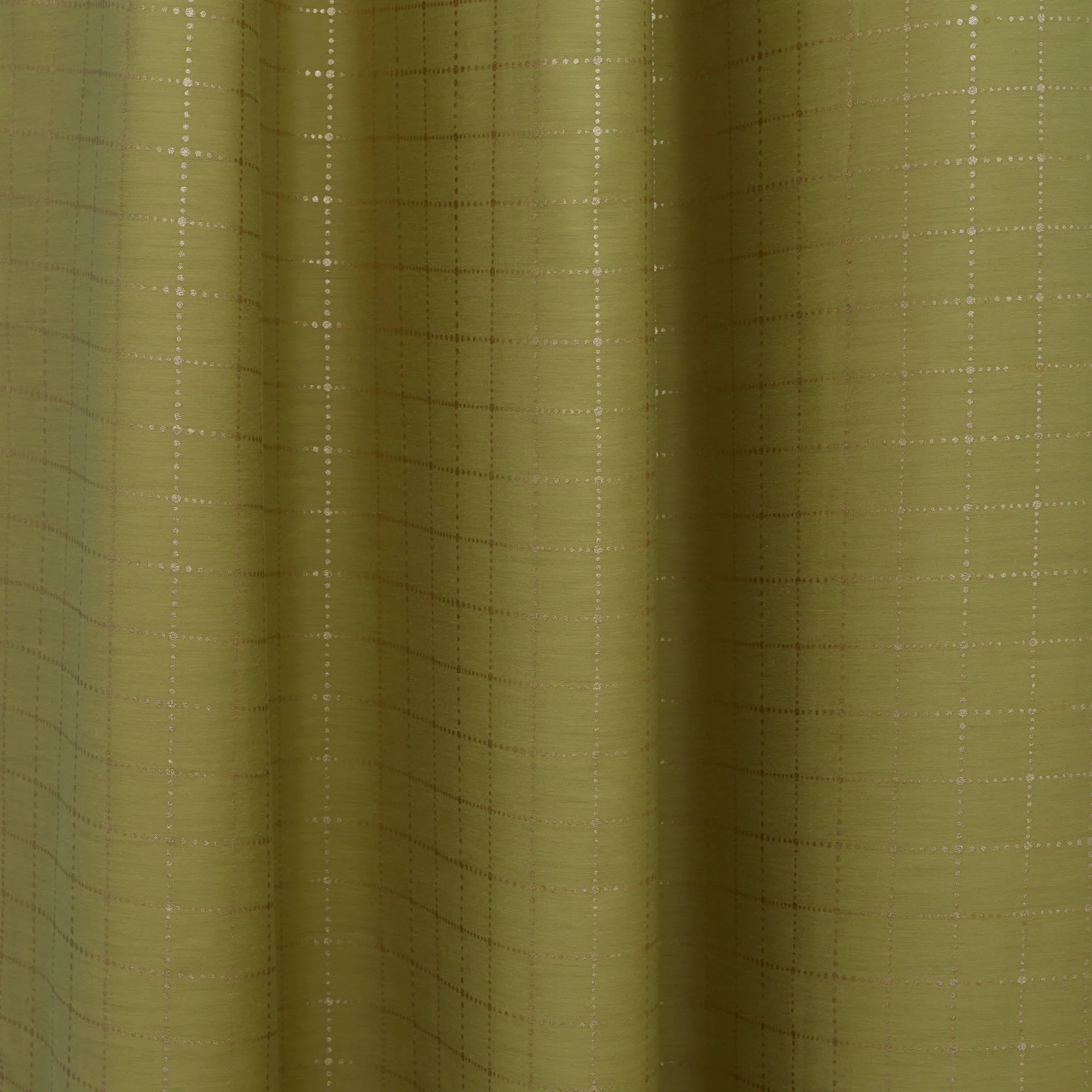 Emilia Set of 2 Foiled Double Layered Black Out Door Curtains 7 Feet in Citron Colour