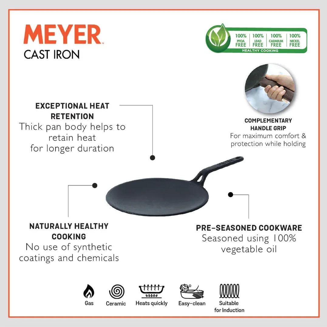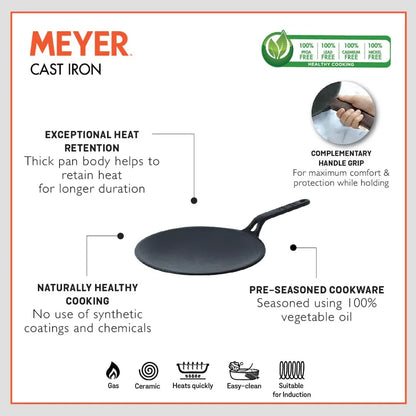 Enamel Free Cast Iron Induction Base Flat Tawa 26 Cm in Black Colour