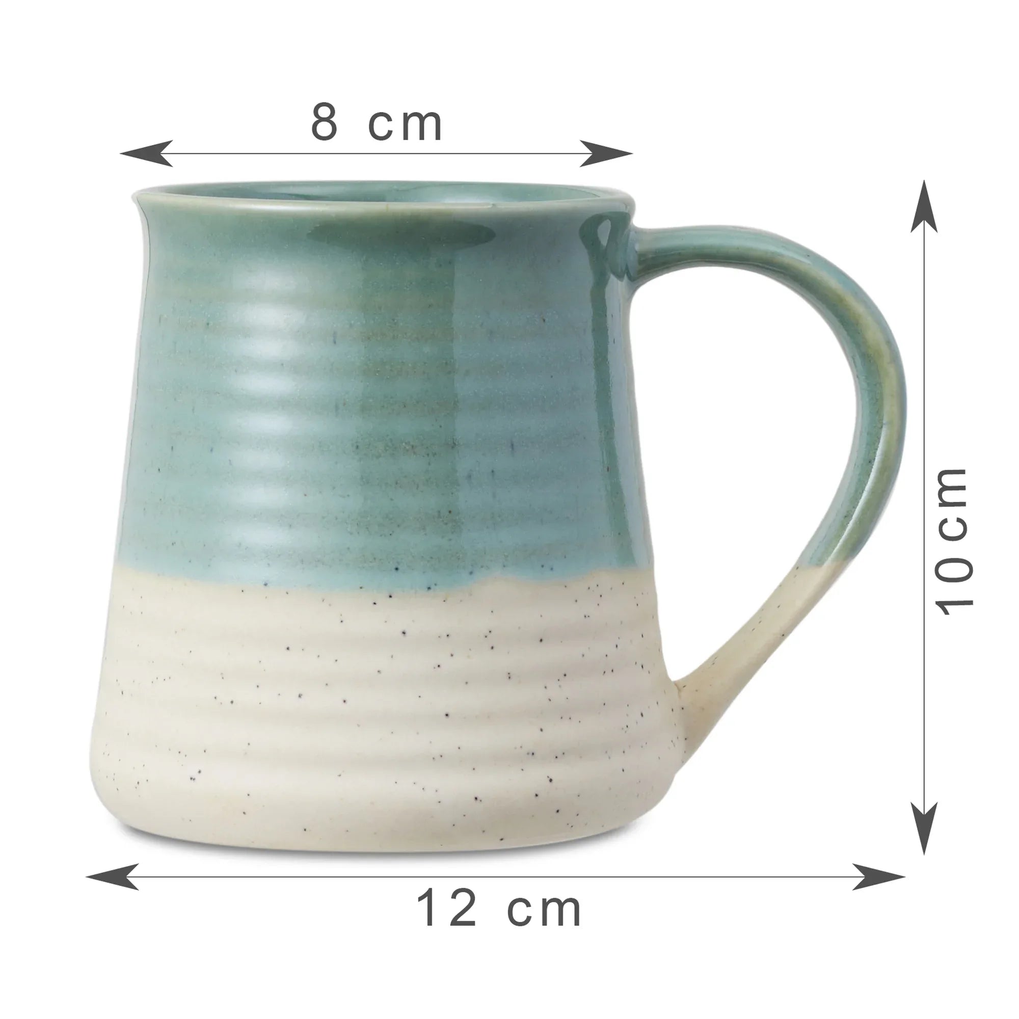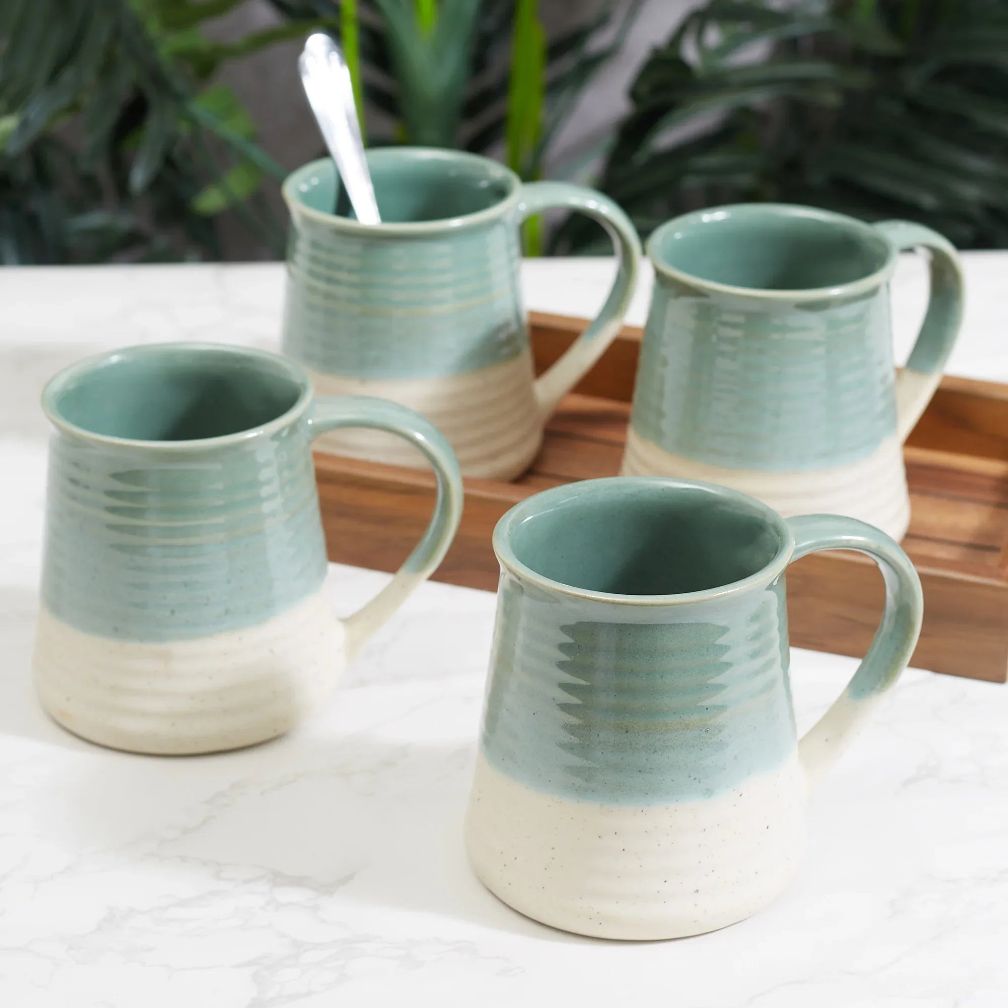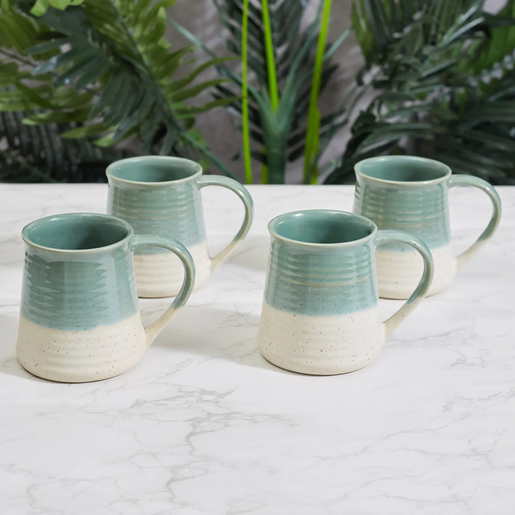 Fiesta Studio Pottery Sage Coffee Mug 300 ML Set of 4 in Green & White Colour