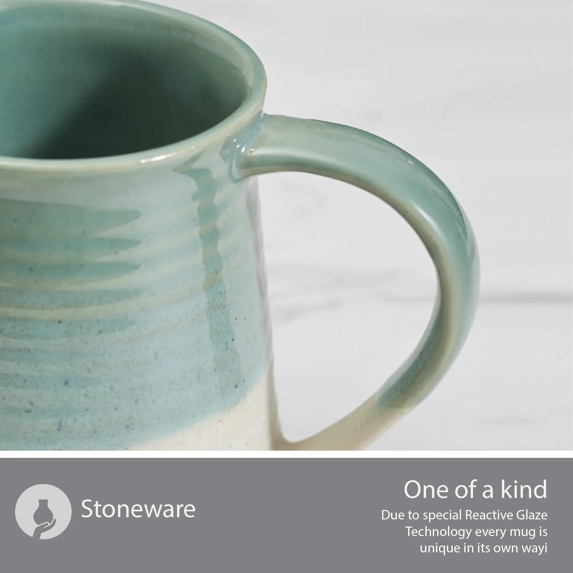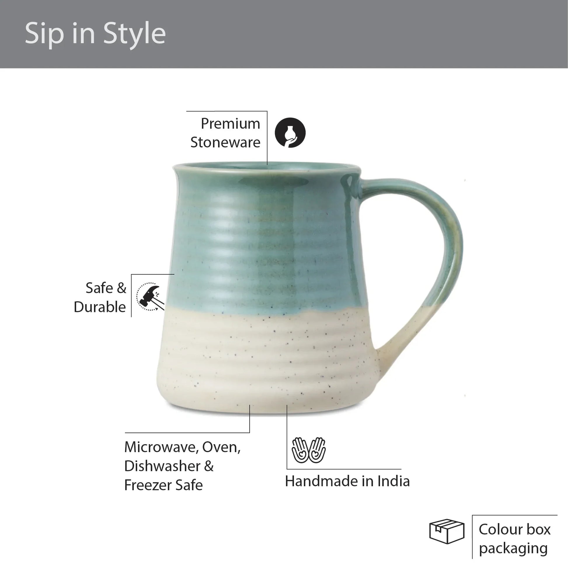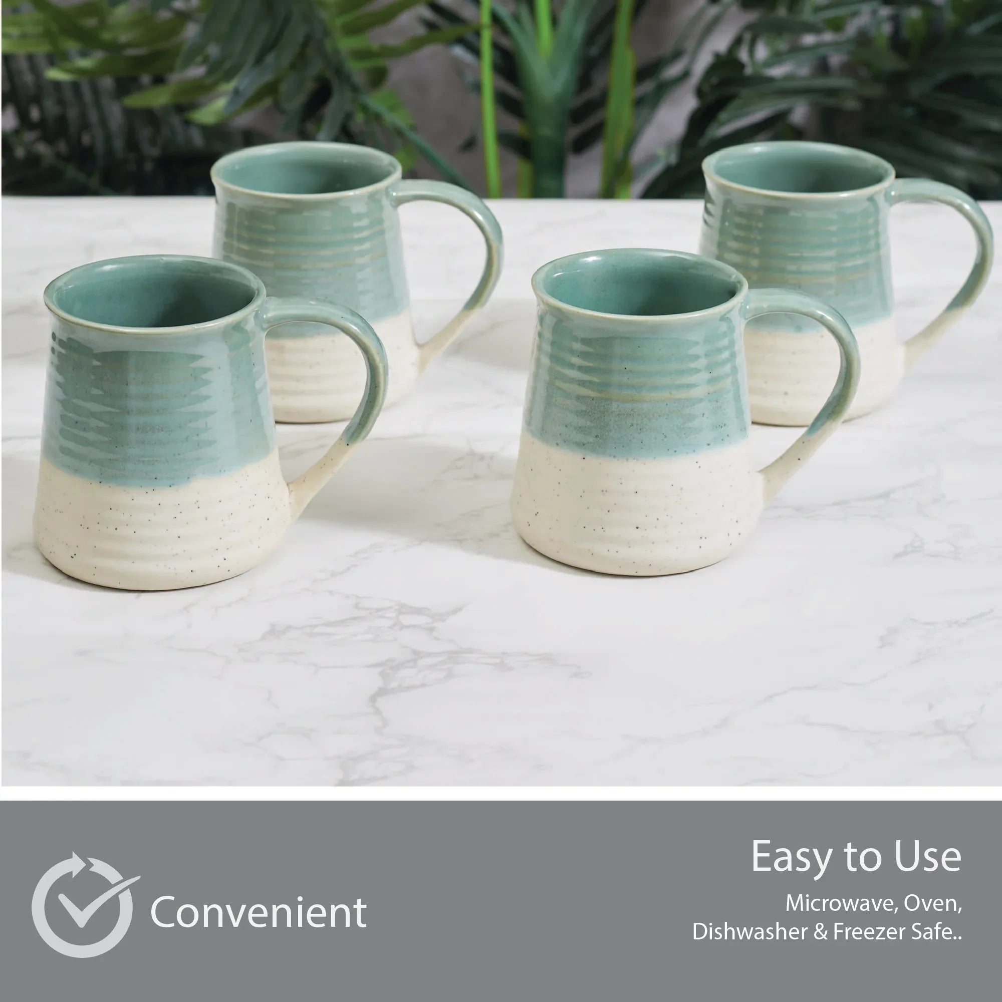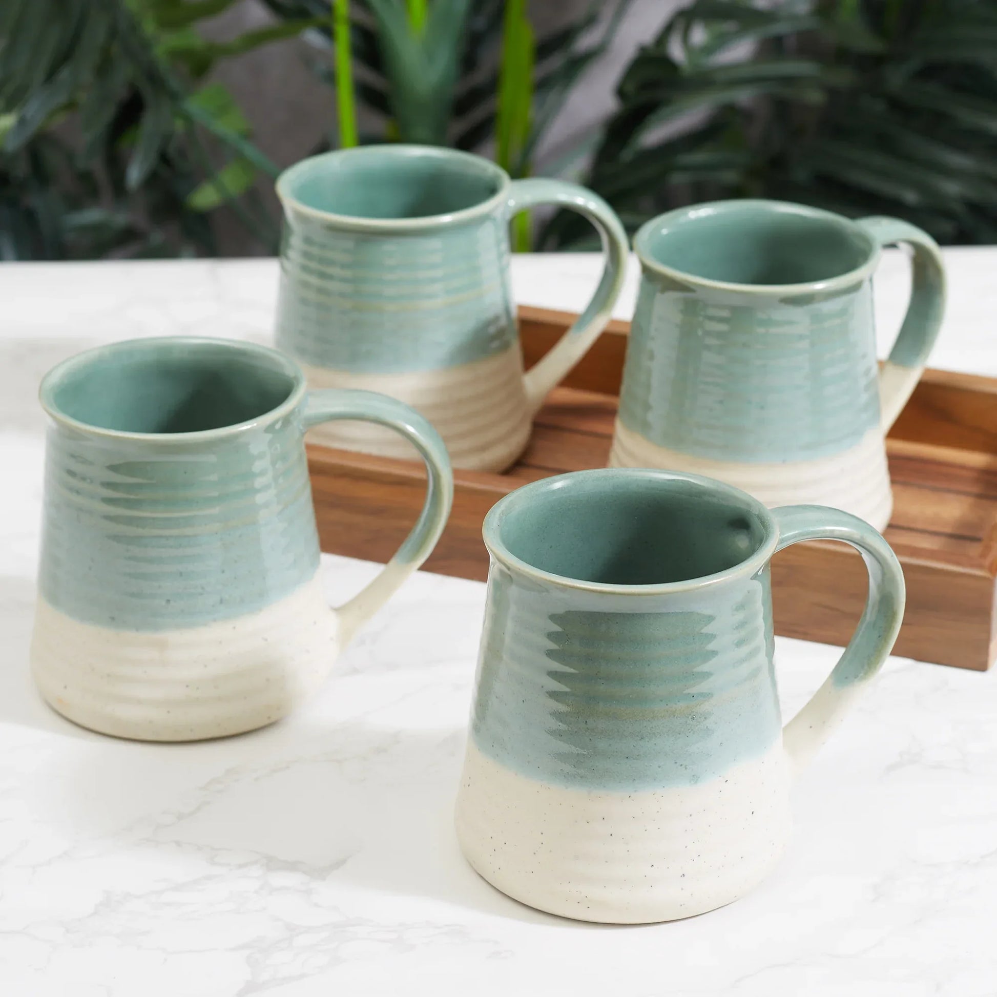 Fiesta Studio Pottery Sage Coffee Mug 300 ML Set of 4 in Green & White Colour