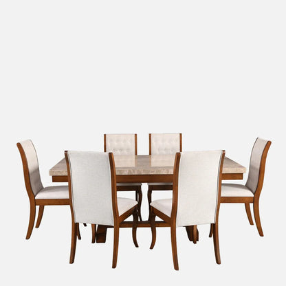 Florentine Marble Finish Six Seater Dining Set in Dark Walnut Colour