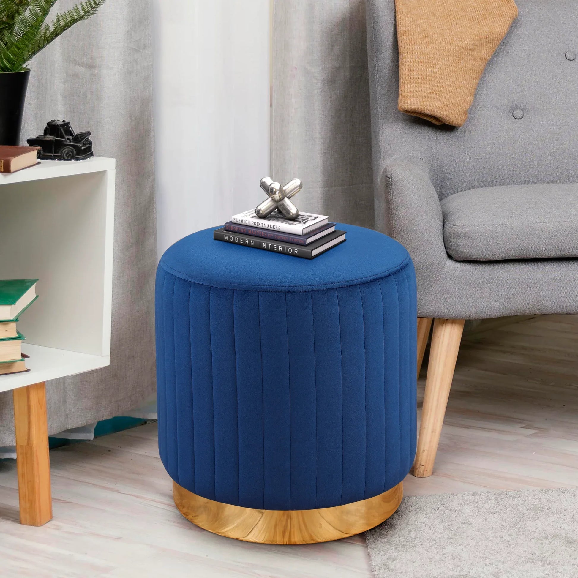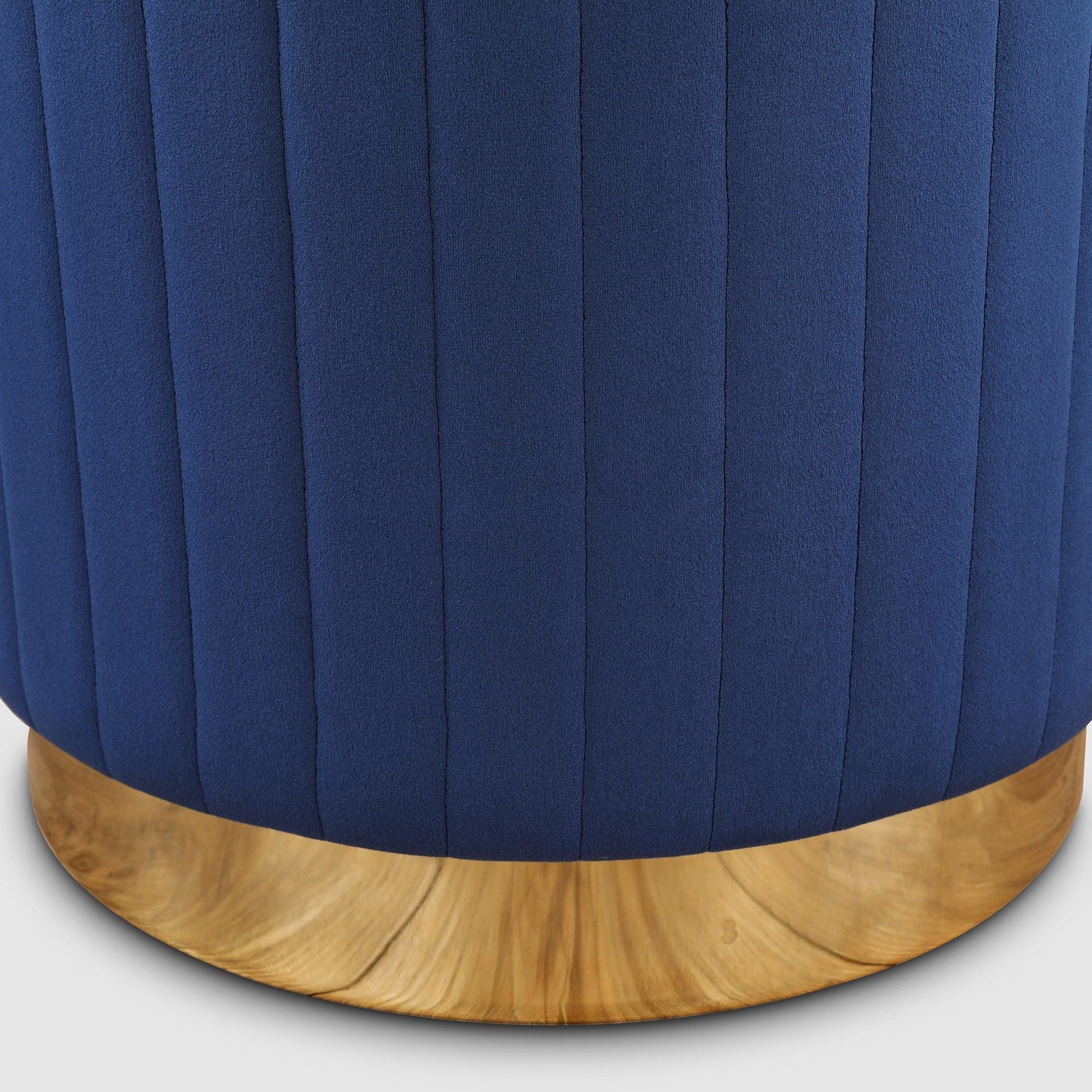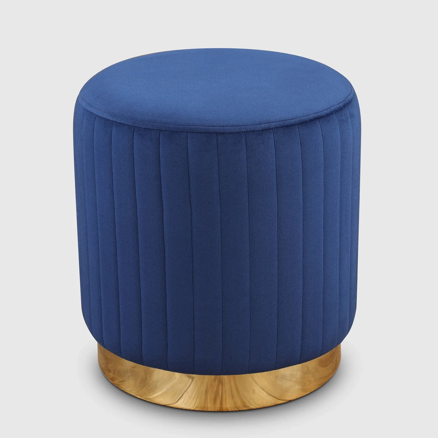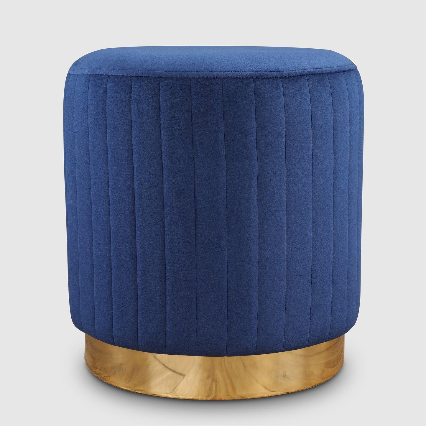 The Francesca ottoman juxtaposed with smooth metallic and velvety soft textures, the versatile seating is a must have accent piece to add to your living spaces. The wide ribbed channelled design detail adds layers of elegant touch and feel details of the ottoman. Blue complimenting with metallic gold base, for casual seating or relaxed footrest, get this elegant ottoman home.