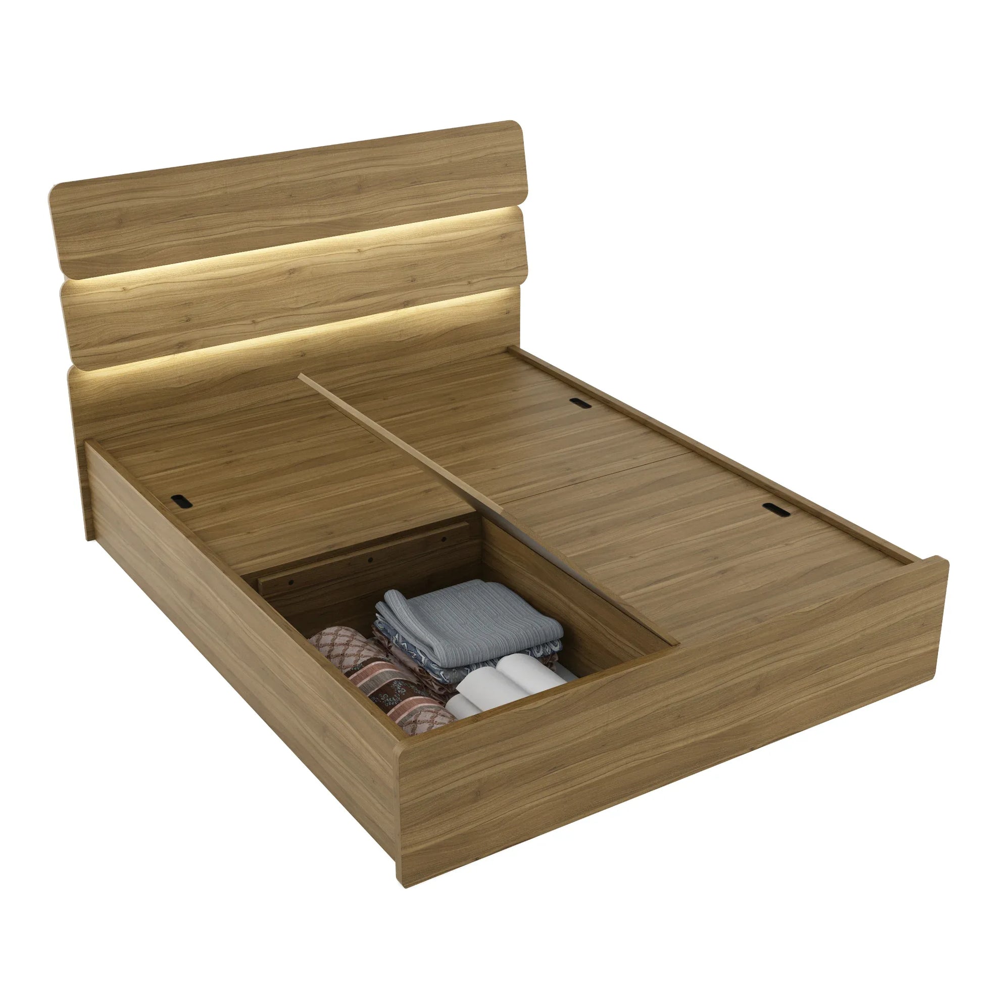 Freya Queen Bed With Box Storage in Natural Teak Colour