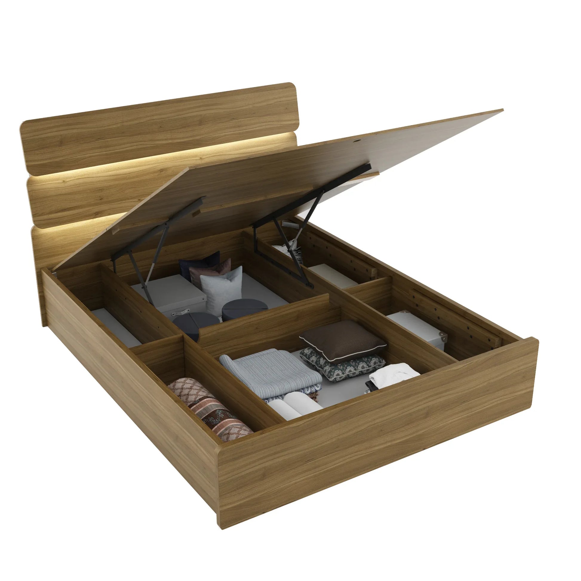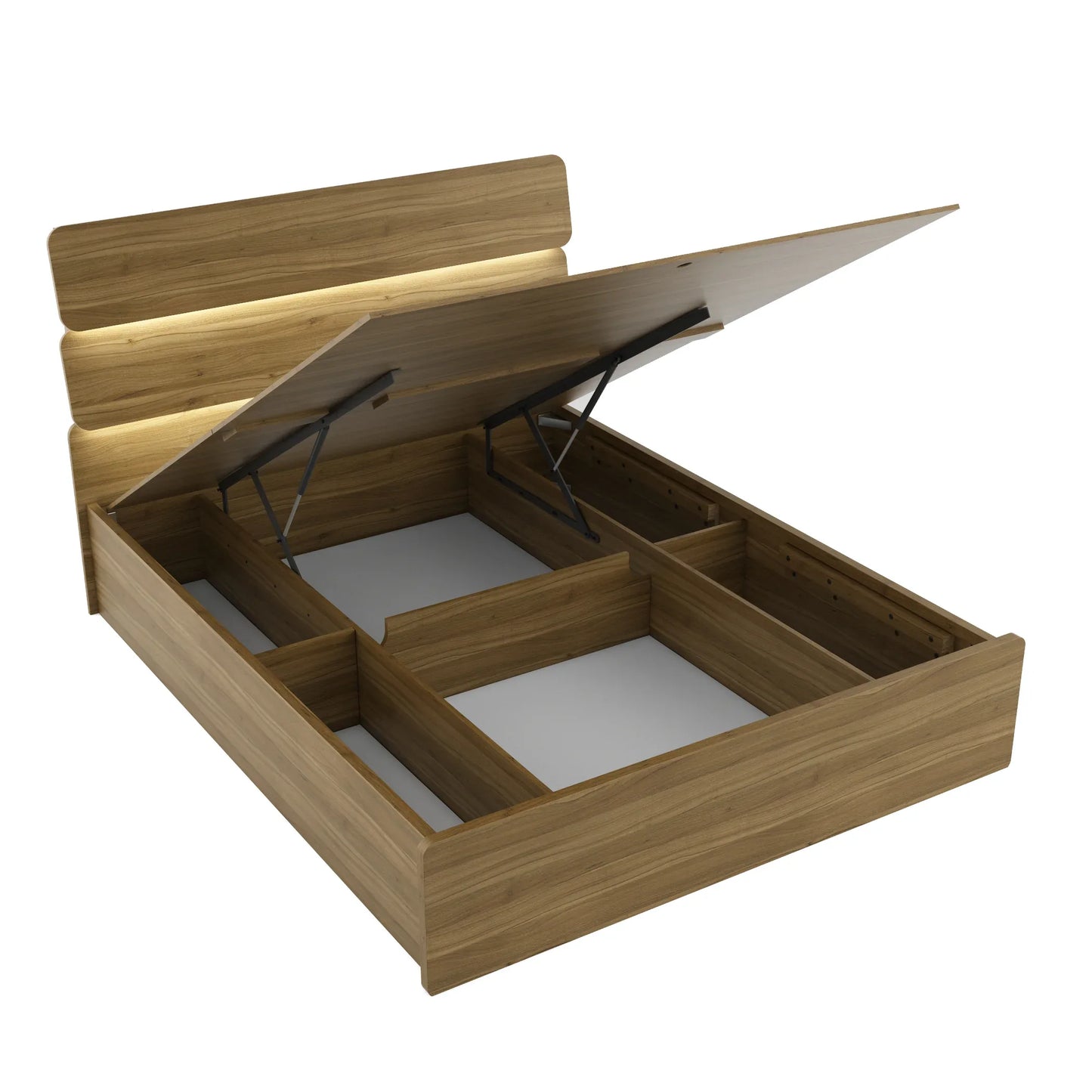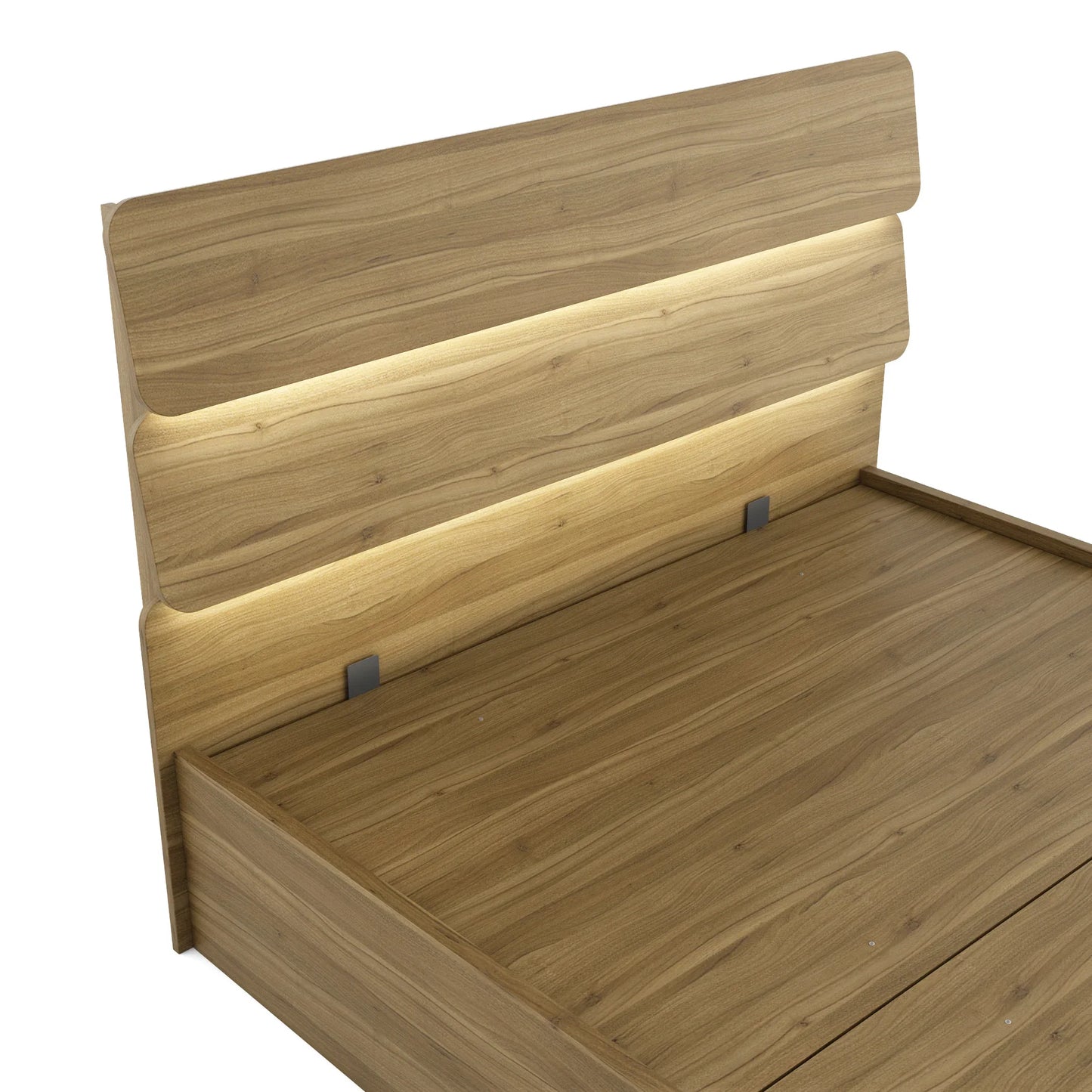 Freya Queen Bed With Hydraulic Storage in Natural Teak Colour