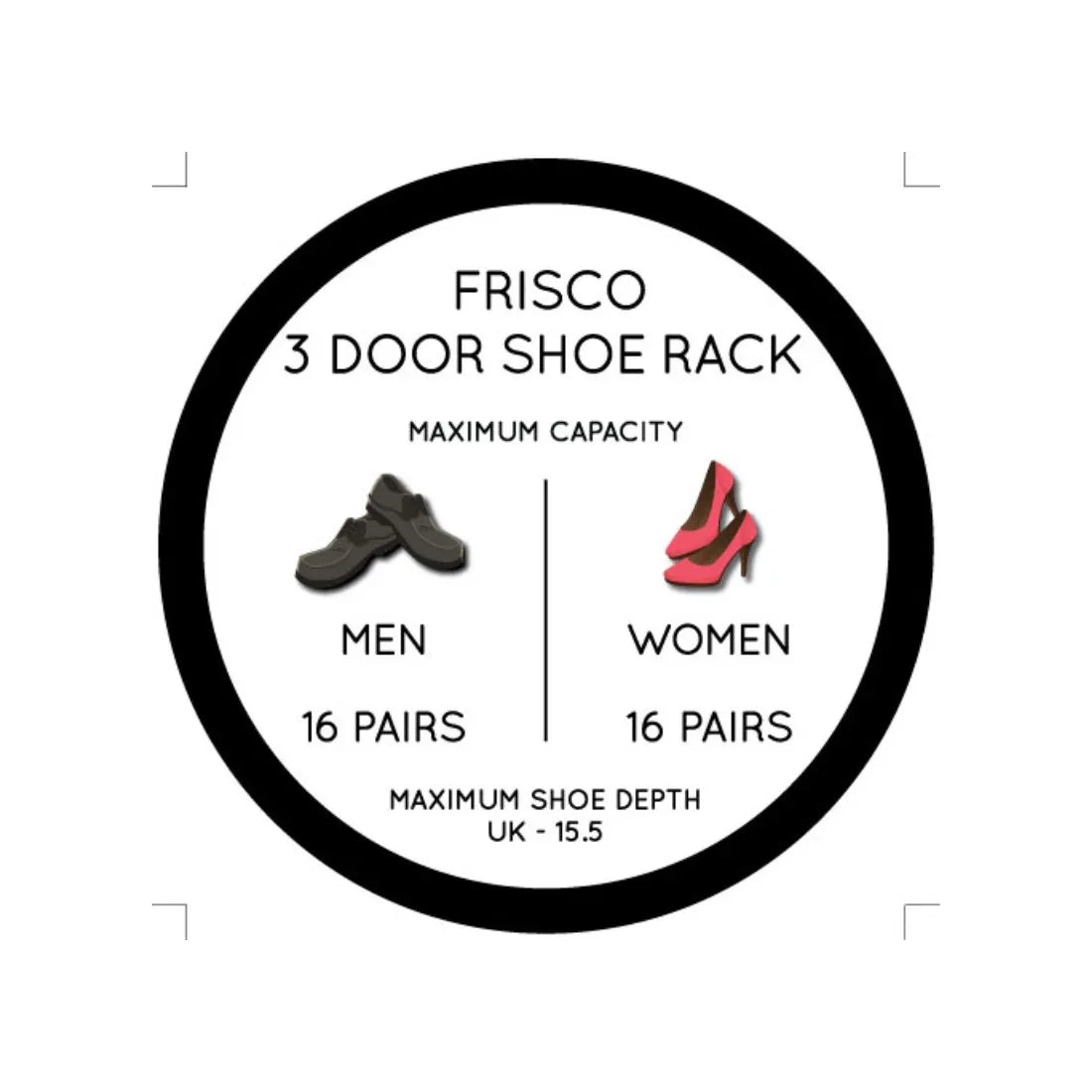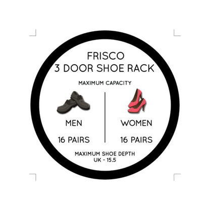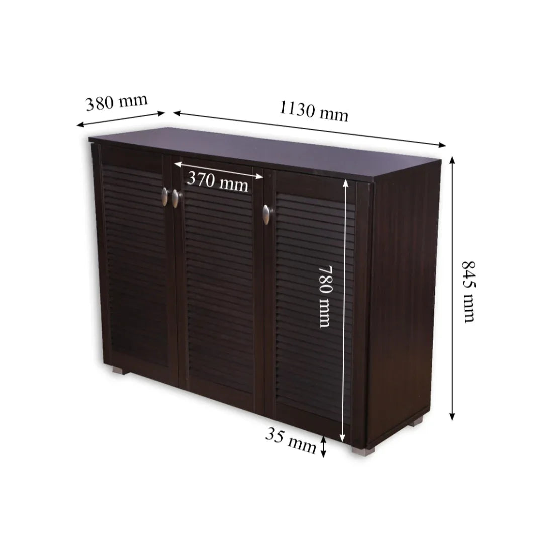 - 3 door shoe cabinet can accommodate 14 pairs of women OR 14 pairs of men of UK -13 size