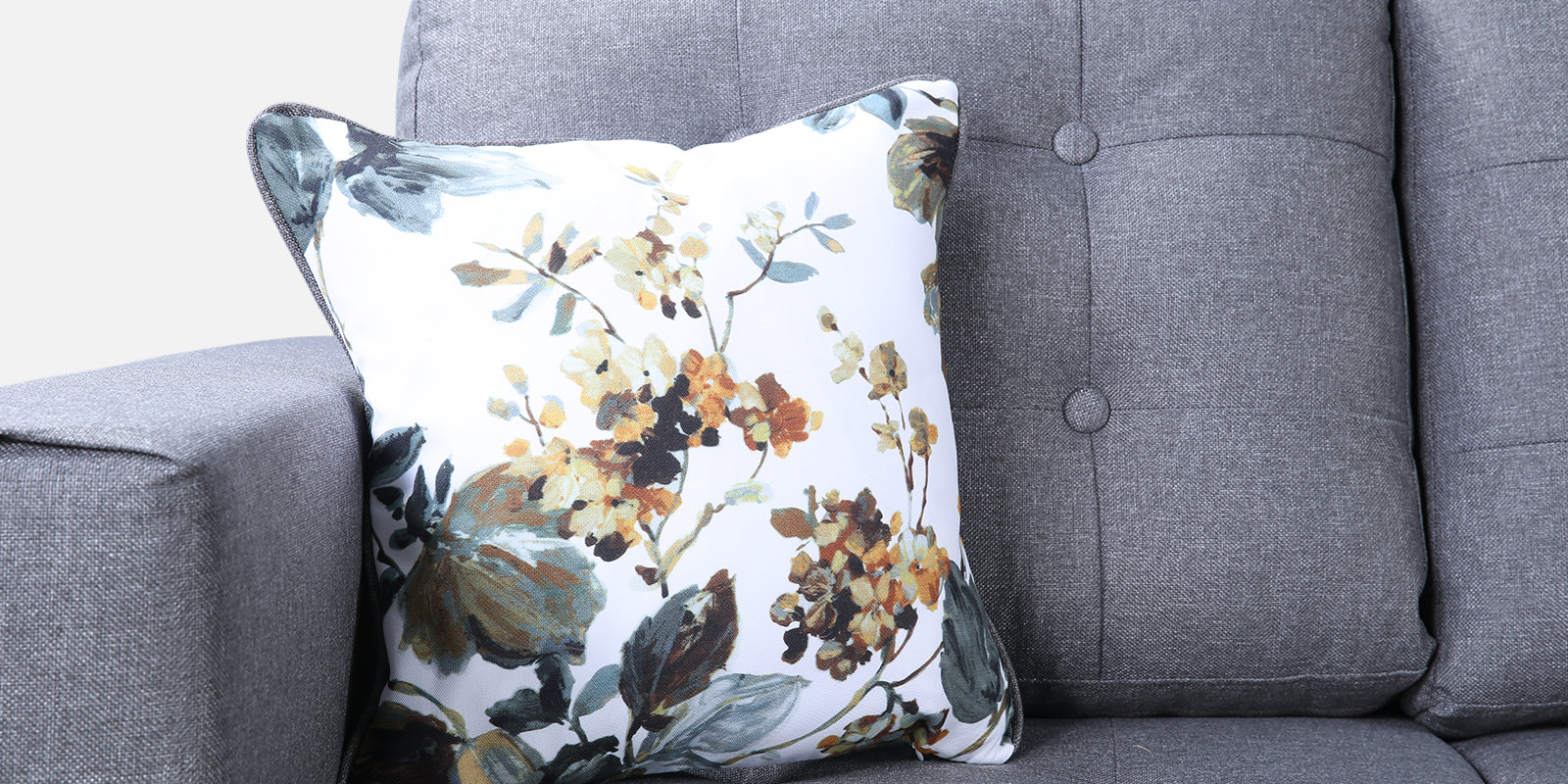 - Loose back cushions with soft button tucks are filled with polyester fibre to offer plush support and maintain shape over time.