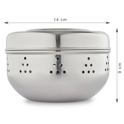 Glisto Stainless Steel Flat Canister/Puri Dabba/ Sprout Maker/Herb Container Set of 2 with Air Ventilation in Silver Colour