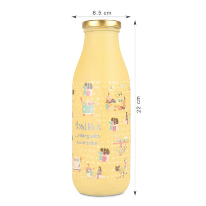 Good Life Glass Frosted Juice Bottle 550 Ml in Yellow Colour